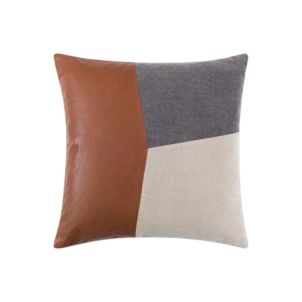 Transform your home into a modern haven with the Branson Throw Pillow from Surya. Made with premium cotton and luxurious leather detailing, this industrial rustic accent is a perfect addition to any room. Its spot-cleanable fabric ensures longevity, making it a timeless statement piece. Elevate your space with its understated yet sophisticated design. Highlights