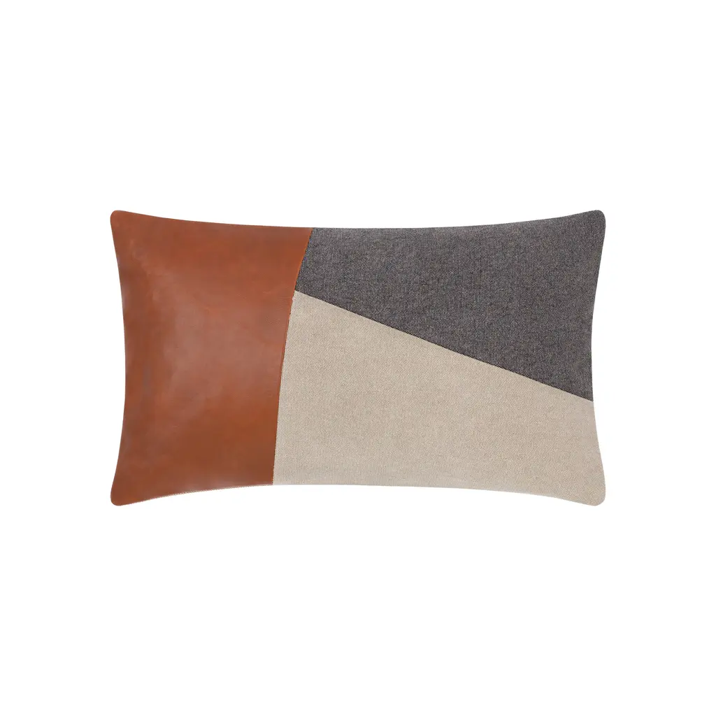 Transform your home into a modern haven with the Branson Throw Pillow from Surya. Made with premium cotton and luxurious leather detailing, this industrial rustic accent is a perfect addition to any room. Its spot-cleanable fabric ensures longevity, making it a timeless statement piece. Elevate your space with its understated yet sophisticated design. Highlights
