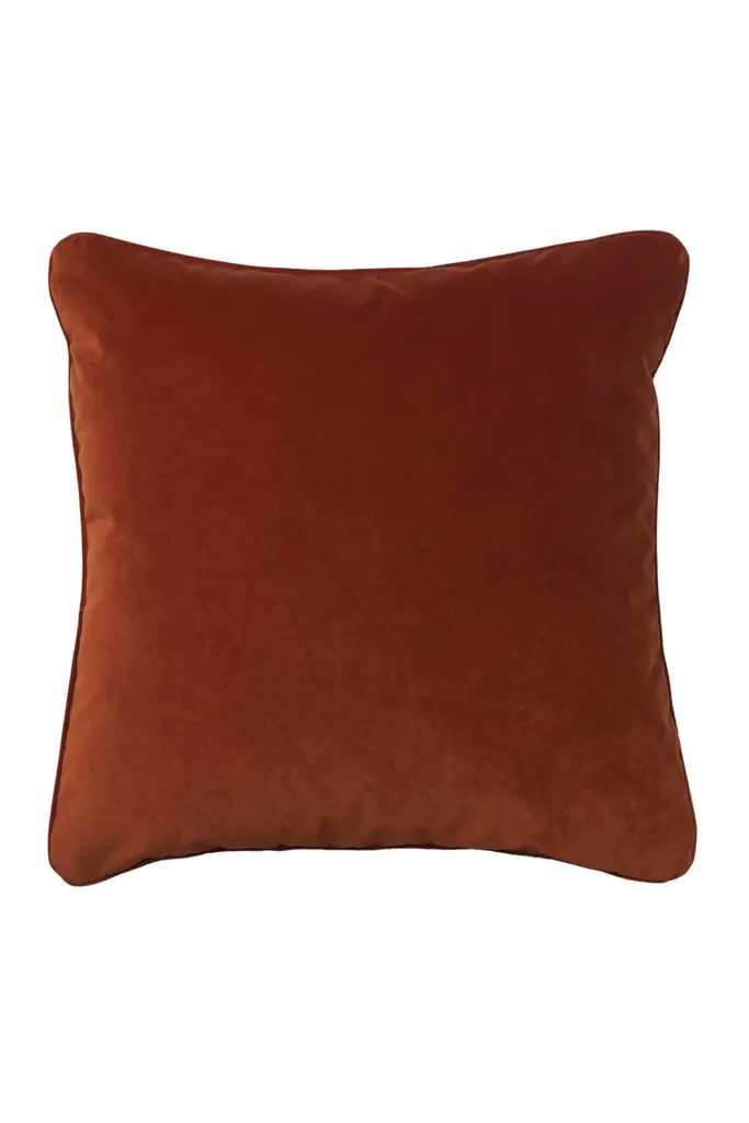 Neat and classic, this luxurious velvet pillow in rich rust red adds the perfect mid-century modern accent to any room. Its saturated, solid color and plush texture layer together and mix well with coordinating patterns and solids. Our decorative pillows include your choice of a plush Feather or lofty down-alternative insert. The washed organic cotton brick velvet pillow is a Crate & Barrel exclusive.