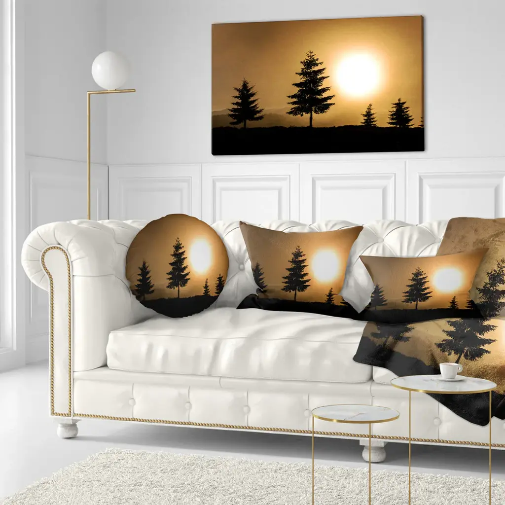 Bright Sunrise Tree Silhouette Landscape Printed Throw Pillow, 12"x20"
