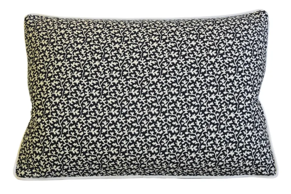 A delicate floral pattern and tailored trim give this throw pillow its timeless charm. Woven from pure linen, it styles effortlessly into both vintage-inspired and modern interiors. We love this decorative pillow as a standout moment on a bed or occasional chair.