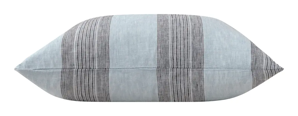 Is there anything more classic than stripes? Incorporate this timeless motif into your space with our go-anywhere Brixham Pillow. Made entirely from soft linen, Brixham pairs a pale blue ground with chunks of awning stripes in a contrasting grey hue. We’ve added a hidden zipper closure and a luxe down and feather pillow for a plush feel that’s great for curling up with. Just the right amount of pattern, Brixham makes an effortless addition to any home, whether you style it on its own in a cozy armchair or layer it alongside other pillows in coordinating colors. •100% linen•hidden zipper closure•down and feather insert Dimensions •20" x 20"
