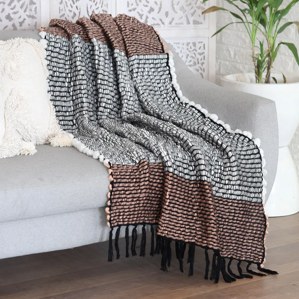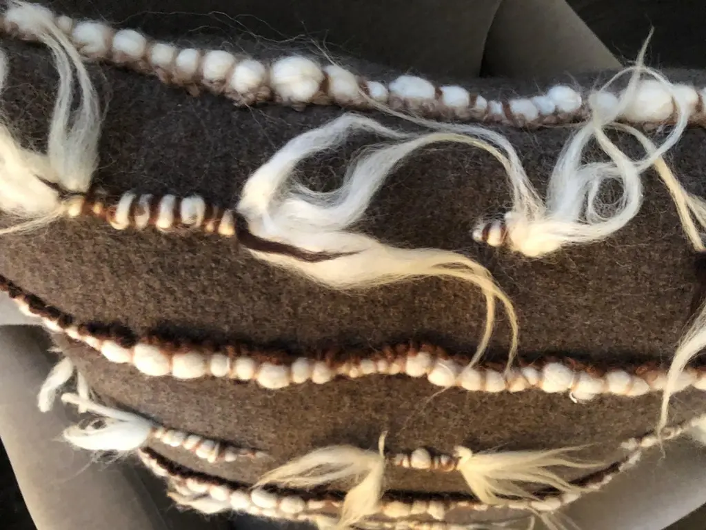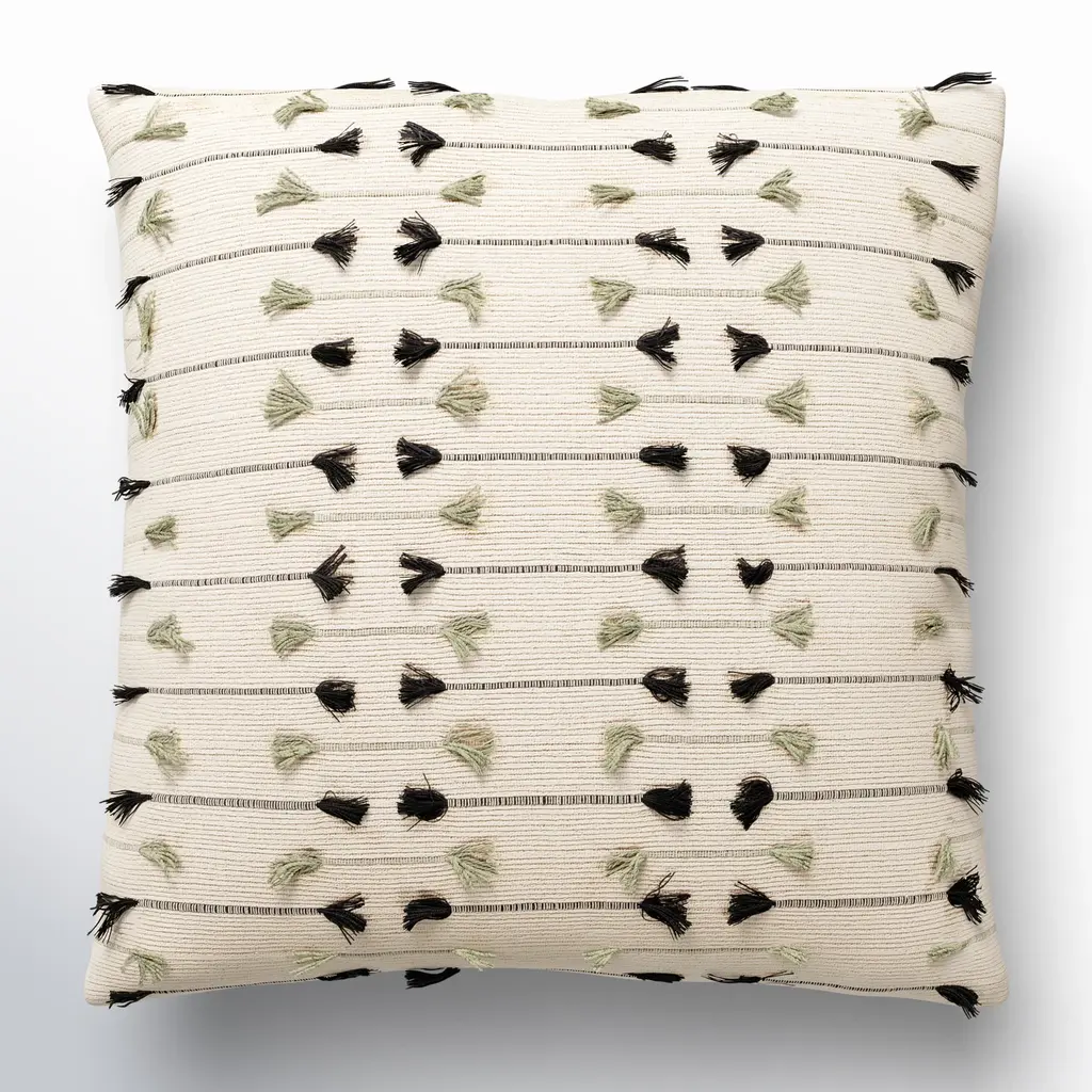 Hand woven and hand tufted dark brown wool decorative pillow with individually channeled and fringe details which add texture and tactile quality embellishment. All pillows are unique using only traditional weaving techniques, have feather/down inserts and covered zippers. Made in Italy