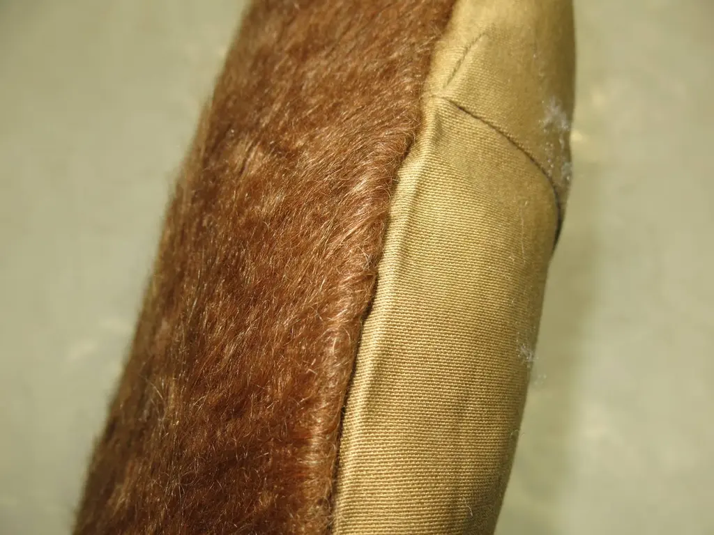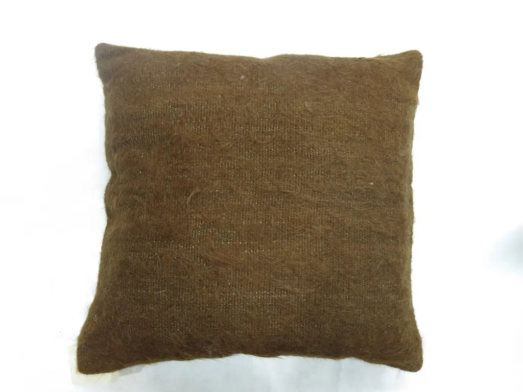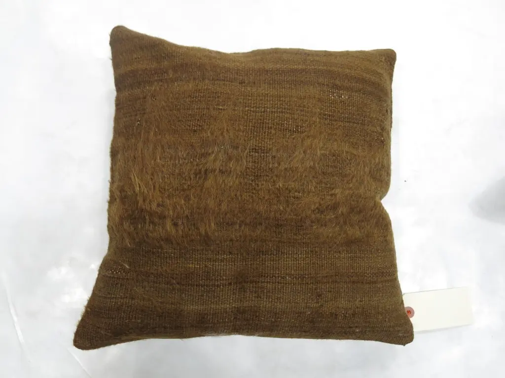A small pillow made with a brown Turkish Mohair rug.Measures: 15" x 15".
