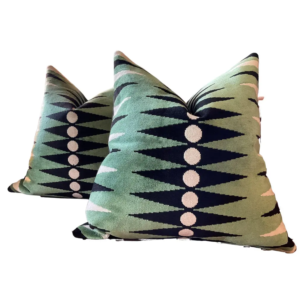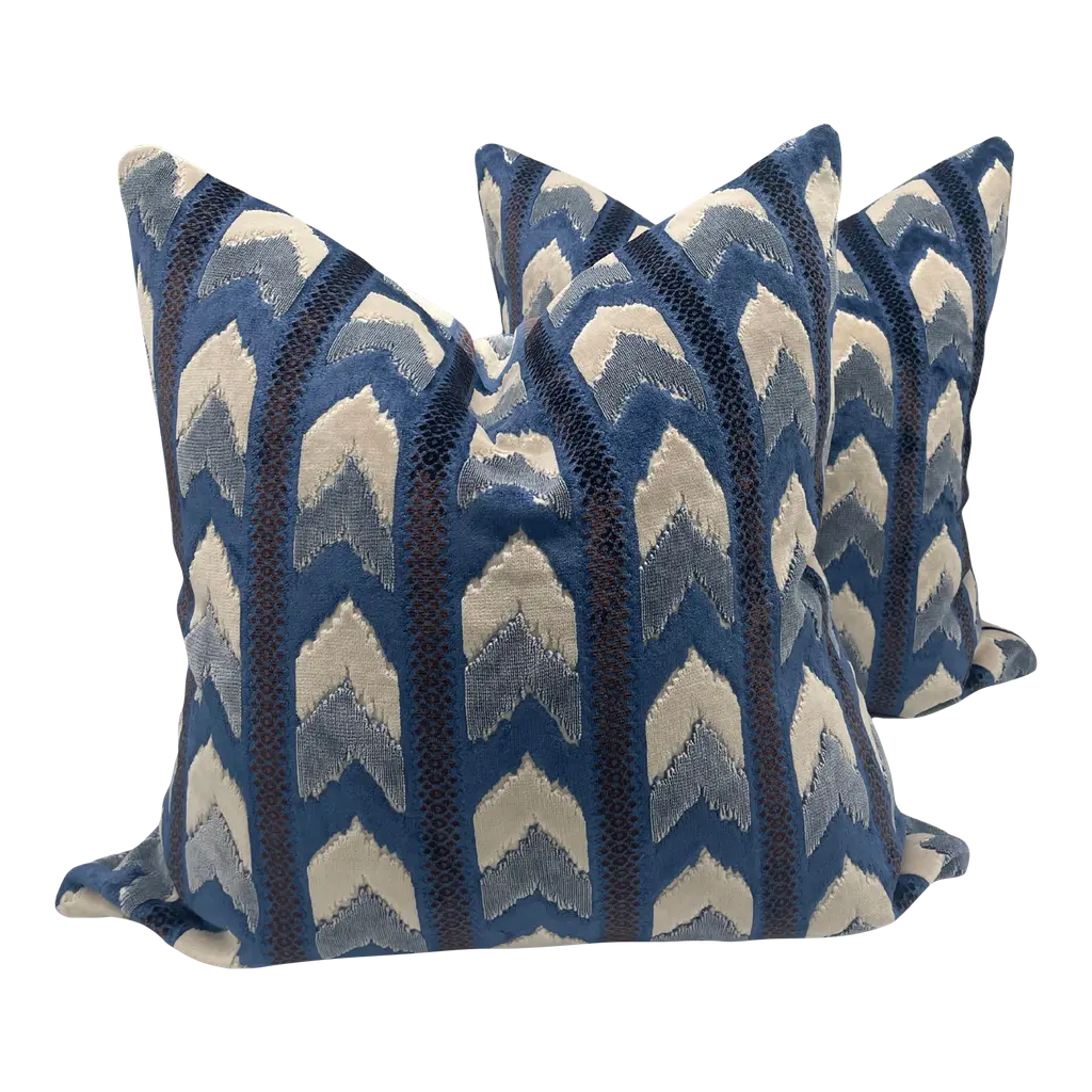 Brunschwig & Fils "Bayeaux Velvet" In Blue 22" Down-Filled Pillows - A Pair