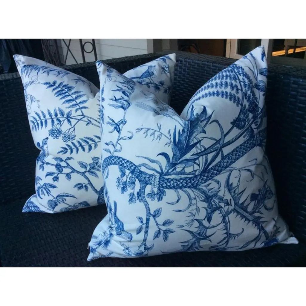 Brunschwig & Fils "Bird And Thistle" In Blue 22" Down-Filled Pillows - A Pair