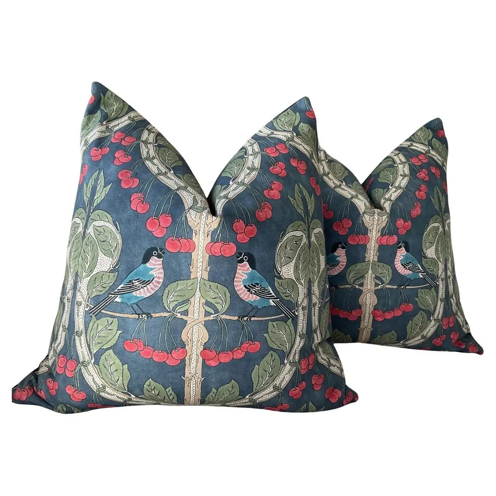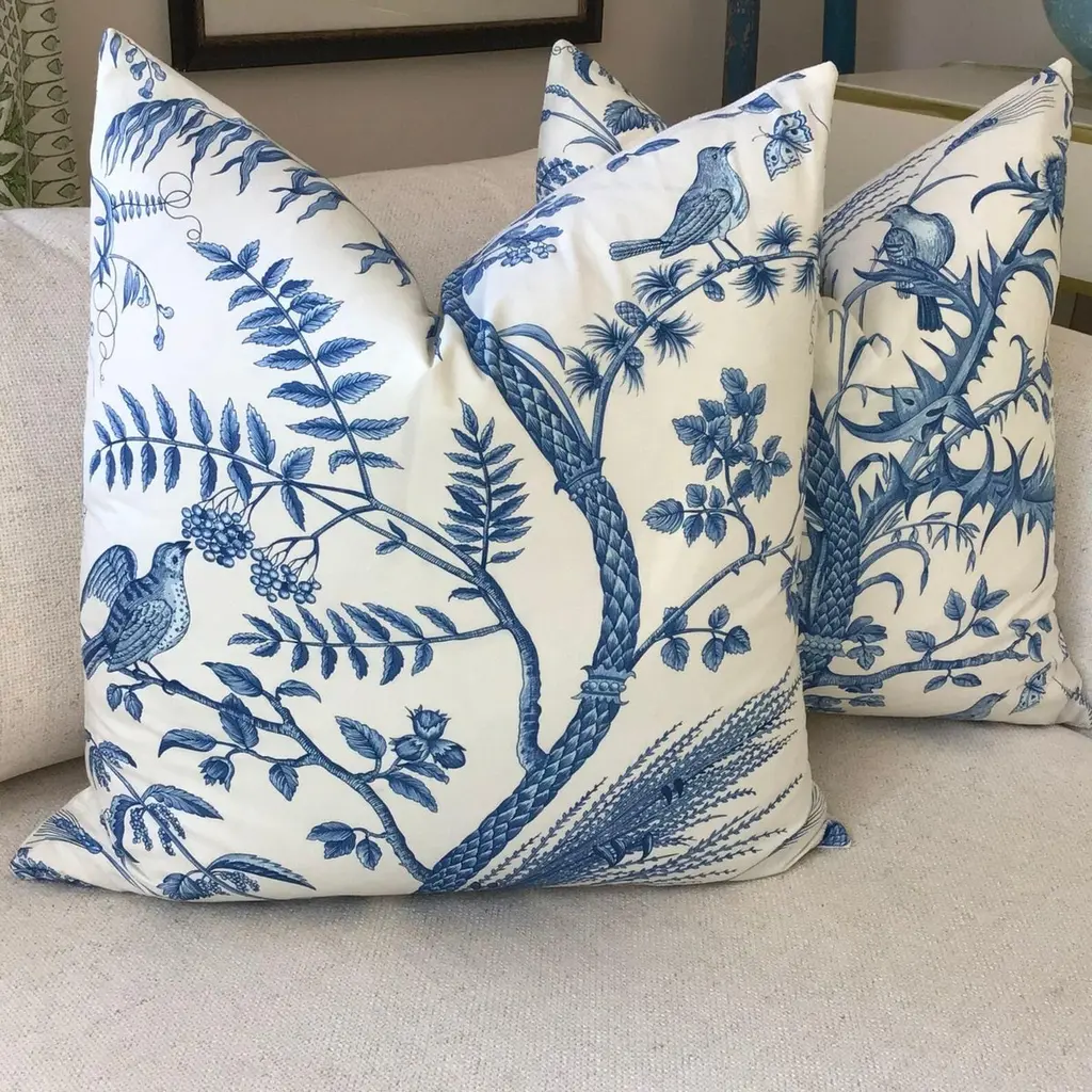 Made from a classic fabric from Brunschwig & Fils, "Bird and Thistle" is one of those designs that stands the test of time, as evidenced by its inclusion in The Winterthur Museum Collection. In a gorgeous Blue colorway on ivory, the toile scene features vines and birds from a copperplate, in a classically English botanical print.This 22" pair of pillows comes complete with down feather inserts and will feature coordinating ivory linen backs.. Pillow closures are by way of an invisible zipper. Please note, pattern placement may vary; however, you will received a centered pattern & design.About UsAt Accent Marks, each designer pillow is crafted with care using the finest hand-selected fabrics and trims, paired with durable, discreet invisible zippers. We specialize in creating beautiful, high-quality pieces that elevate your home decor. While most of our listings feature 22" pillow pairs, we also offer a range of sizes and single pillow options to suit your needs. All of our Accent Marks pillows are proudly made in the United States.If you don't see the fabric you're searching for, please reach out via message as we have other fabrics available upon request and can create anything that you like. Thank you for visiting Accent Marks!