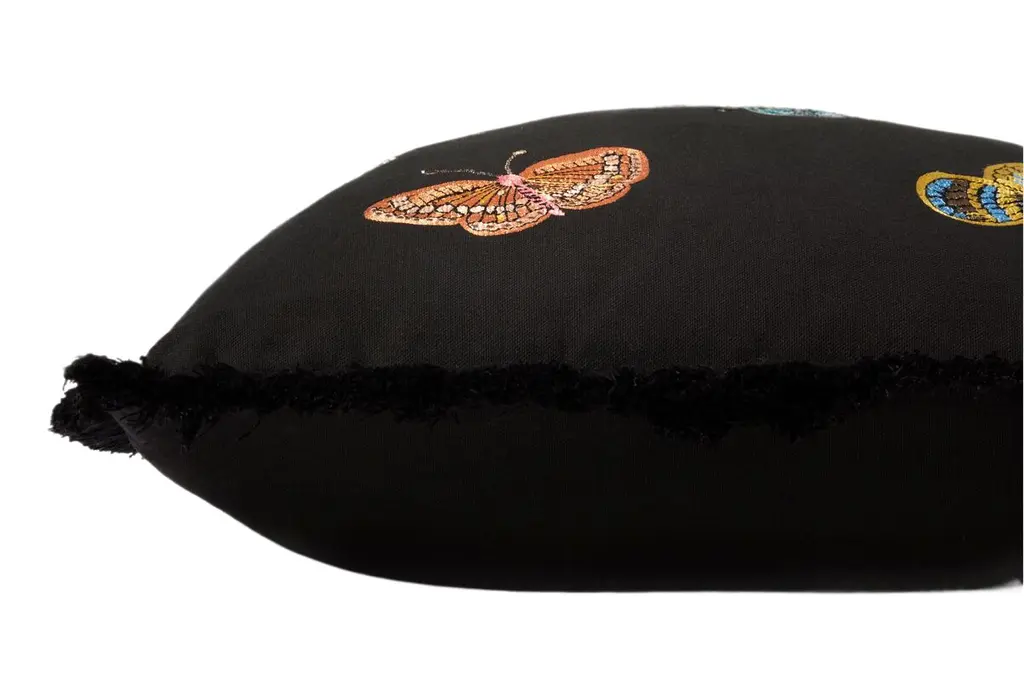 Bryony Butterfly Fringe Pillow, Black