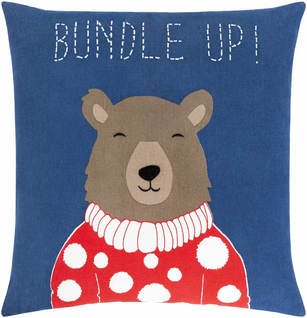 Bundle Up Bear 22 X 22 Inch Navy/black/white/bright Red/camel Pillow Kit, Square