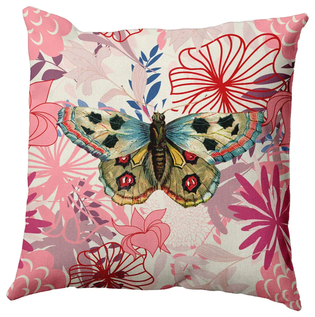 Butterfly In Floral Jumble Decorative Throw Pillow, Pink Icing, 18"x18"