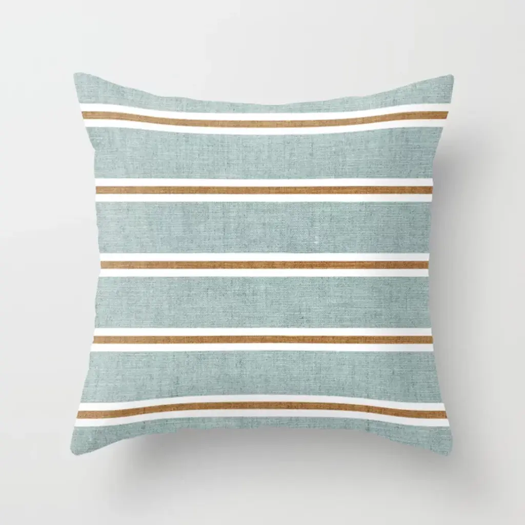 Cadence Stripes - Dusty Blue And Rust Throw Pillow