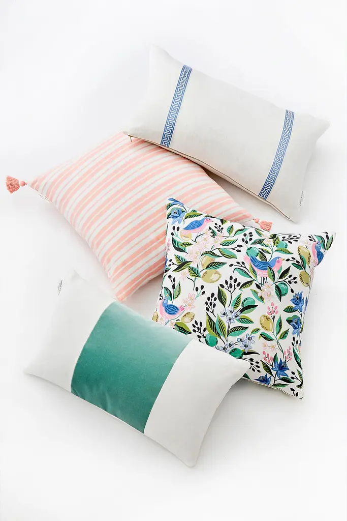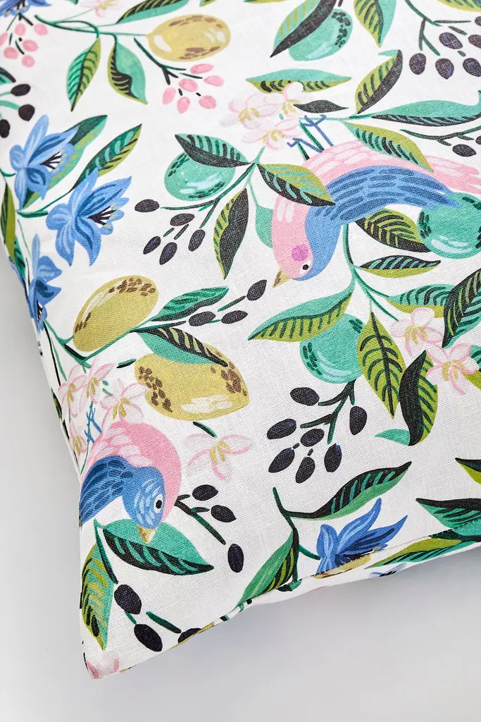 Citron Vert brings together vibrant leaves, blooming florals, pops of citrus, and whimsical birds with a painterly perspective. Caitlin Wilson Design is known for a traditional-with-a-twist aesthetic and unique use of pattern and color. The Caitlin Wilson Design Team designs all textiles for pillows, rugs, wallpaper and fabric in-house. Each collection is thoughtfully designed with the utmost care to every detail. 100% Linen YKK Zipper on bottom Handwash Imported Dimensions XS = 14"x20" S = 16”x26” M = 20”x20” L = 24”x24” XL = 26”x26”