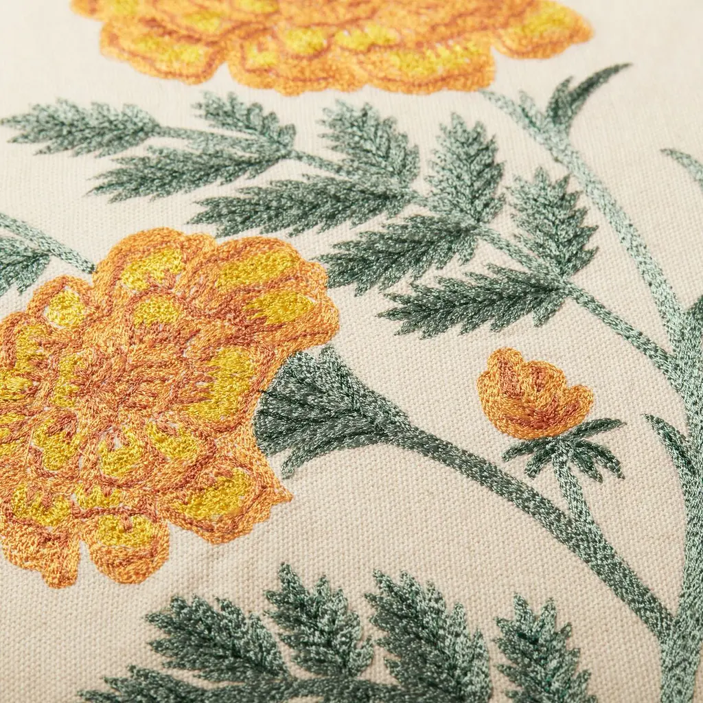 The Calli Pillow features a warm natural background beautifully complemented by vibrant patterns. Its lively design adds a cheerful and inviting touch to any space while providing a soft and comfortable accent.