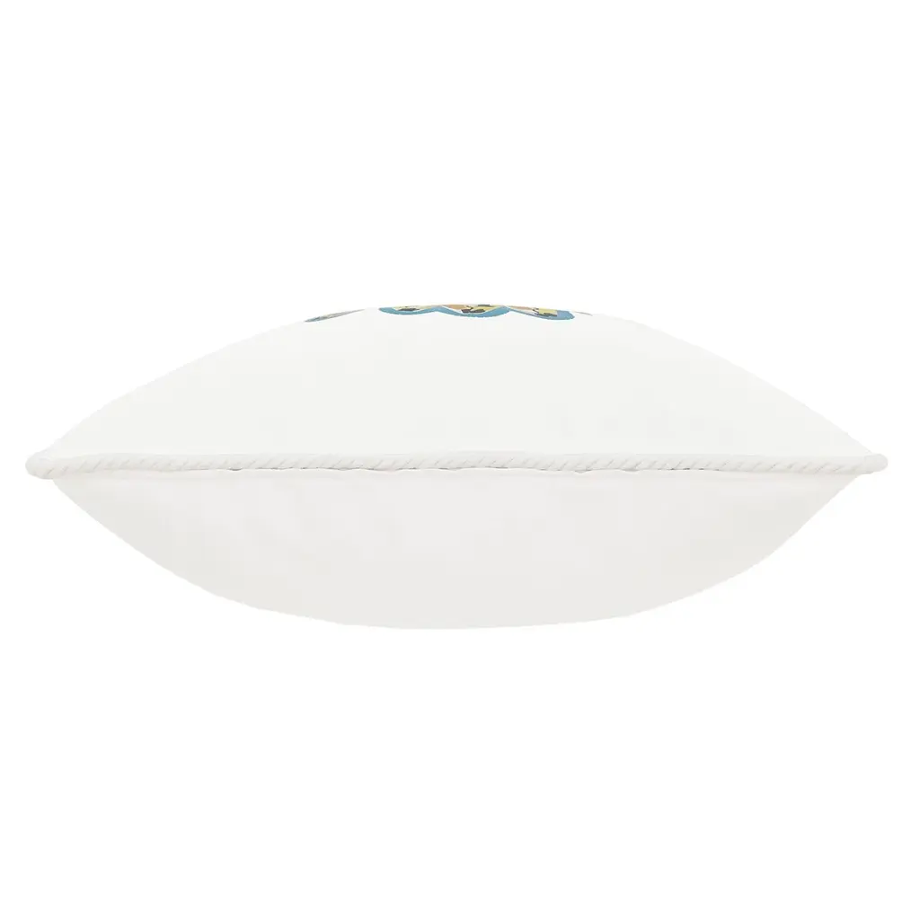 Indulge in the charm of this 100% cotton decorative pillow, adorned with a delightful fruit screen-printed heat transfer design. The self-backed construction in Essex White and cord edge finish add a touch of elegance. Enjoy the convenience of a zipper closure for easy care, and rest assured with the included pillow insert. For best results, dry clean only.