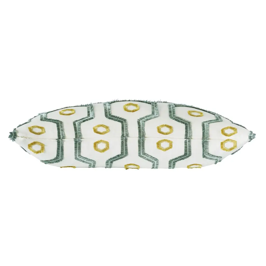 Calypso Emroidered Geometric Pillow, Spa/white