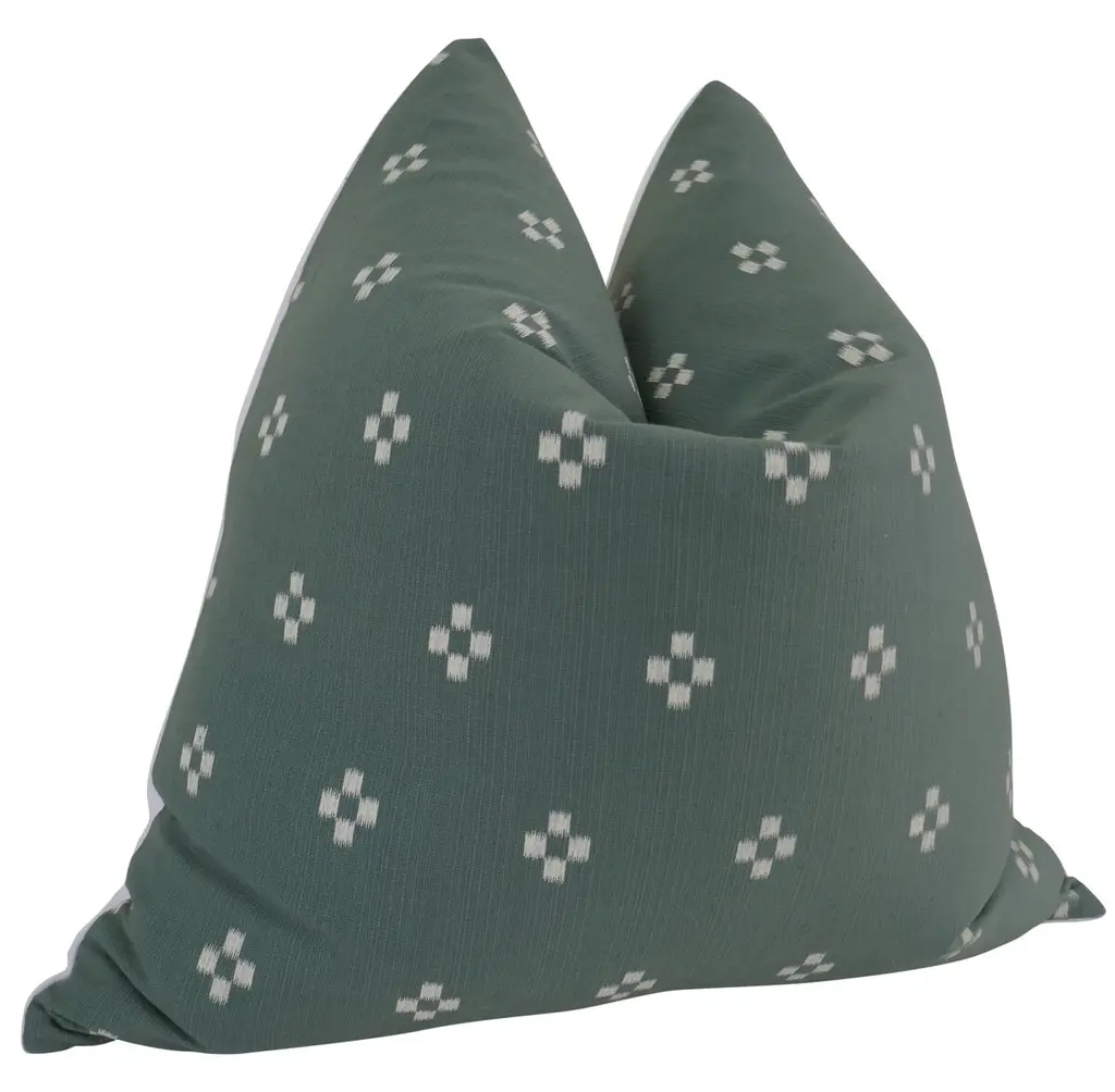 Exclusive to One Kings Lane: Cut and sewn by hand in California, this square pillow brings artisanal allure to its surroundings. Plushly filled Ultra-Plump feather-and-down insert, with an invisible zipper closure. Solid white, premium luxe 100% linen reverse side.