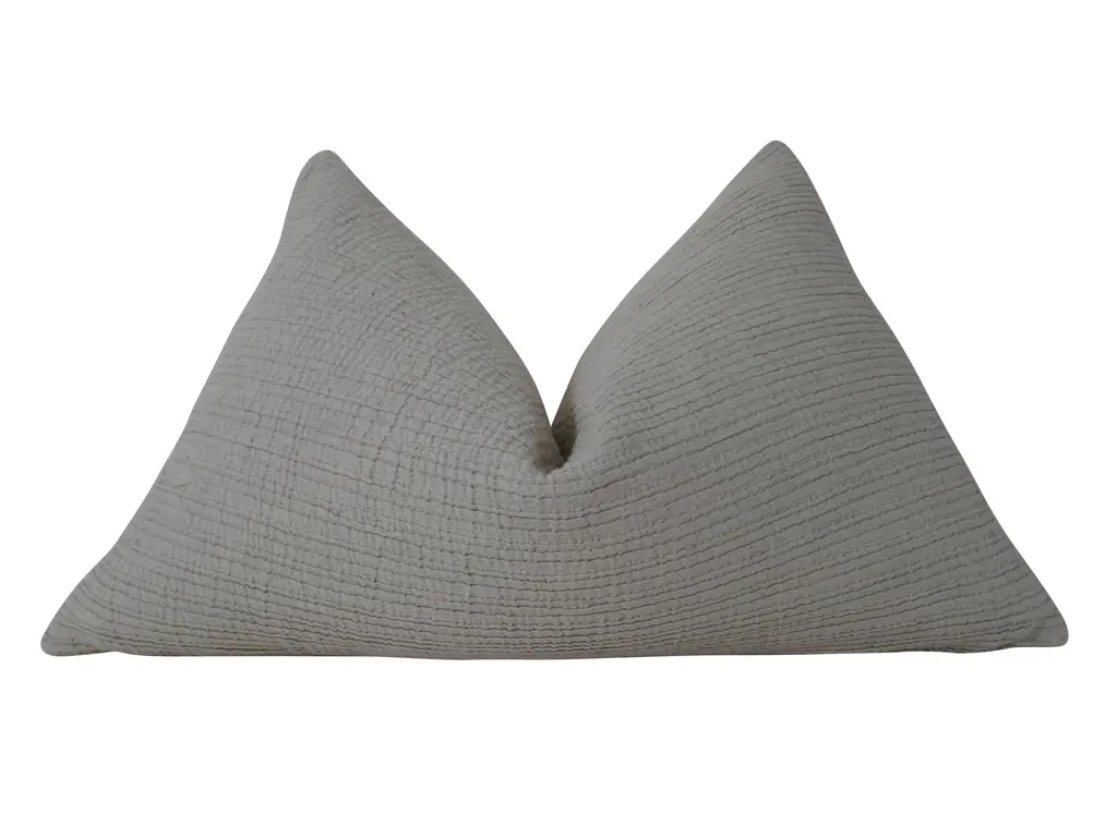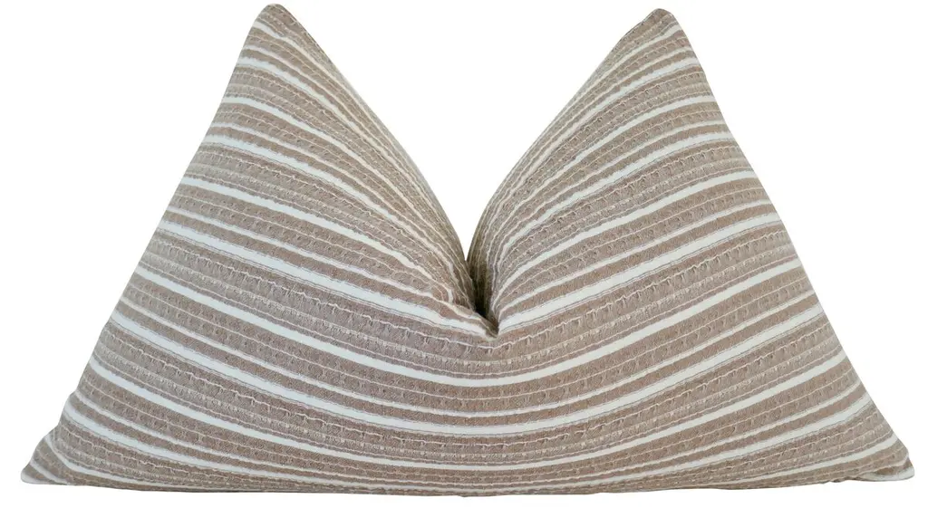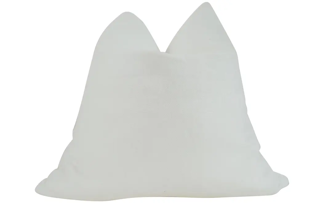 24"x24" large pillow, impeccably created from authentic Italian loomed pure linen/cotton. Intricately woven in a silky soft loose mesh weave. Paired with premium white linen on reverse side. Plush Ultra-Plump down-and-feather insert, invisible zipper closure.