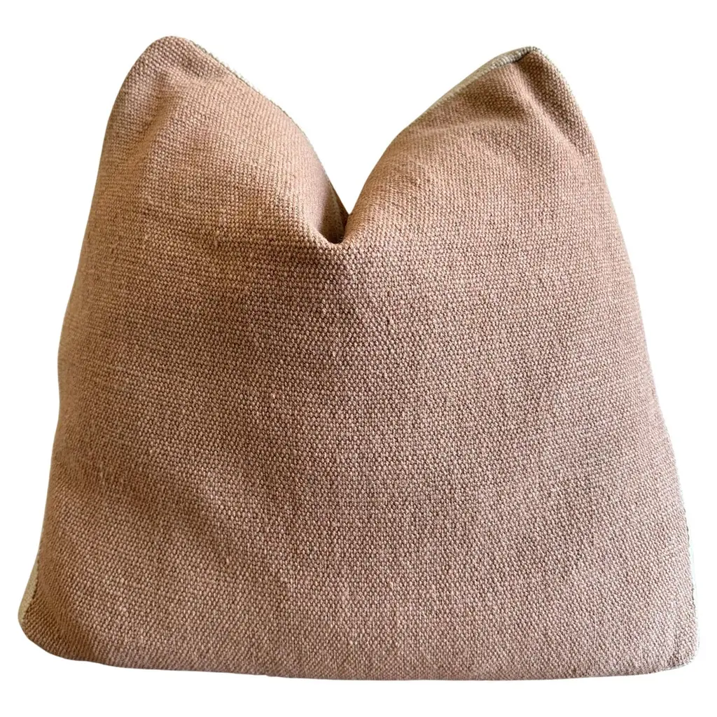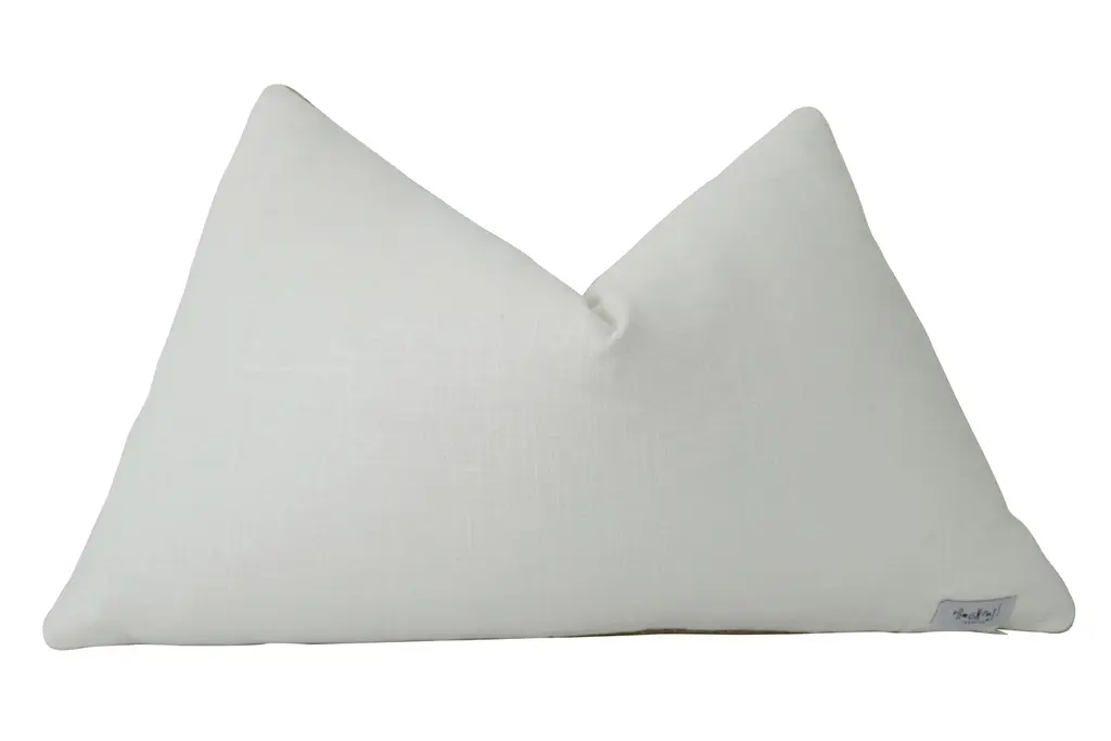 24"x24" large pillow, impeccably created from authentic Italian loomed pure linen/cotton. Intricately woven in a silky soft loose mesh weave. Paired with premium white linen on reverse side. Plush Ultra-Plump down-and-feather insert, invisible zipper closure.