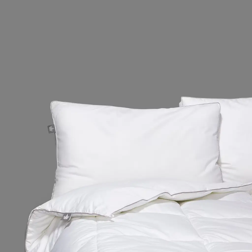 This pillow is made with microfiber fill. Microfiber is soft and plush. It's a high quality polyester that's meant to mimic the softness of down. Microfiber is denser than down, so while microfiber pillows are still soft, they're able to provide a bit more support than down pillows. The shell is soft 300 thread count cotton. This pillow comes in Medium and is a real crowd-pleaser! It generally works for all sleeping positions. INCLUDED: 2 Pillows.