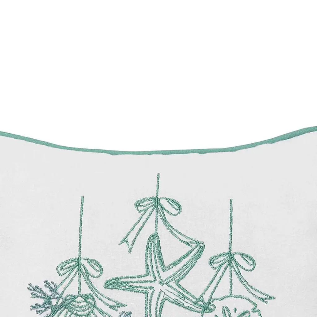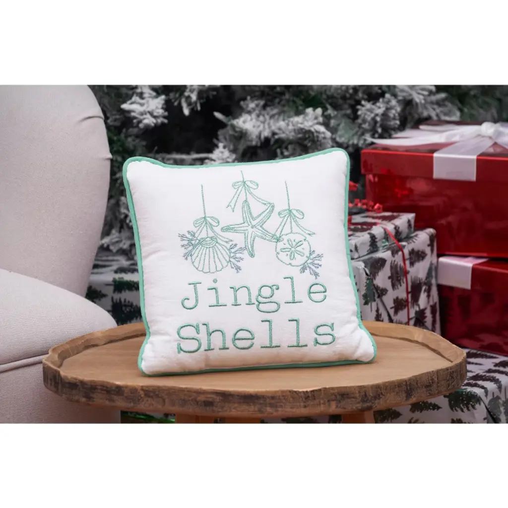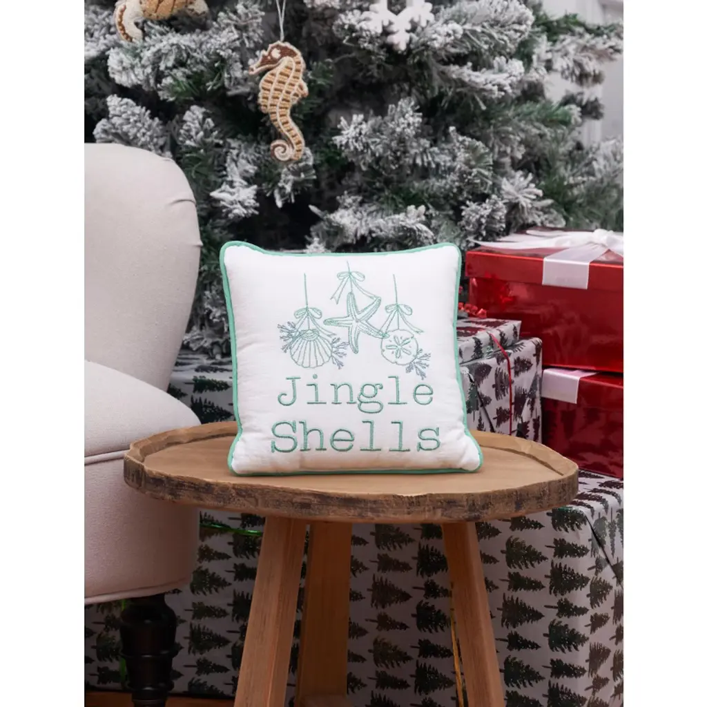 Make a splash this holiday season with the Jingle Shells Pillow. Embroidered with a playful phrase and seashells strung up like ornaments, this ocean-inspired pillow will make waves as a unique and fun piece of holiday decor. Stay with, and accompany us during our continued home décor magical ventures every season years after years.