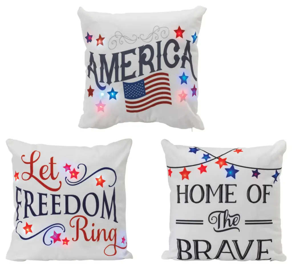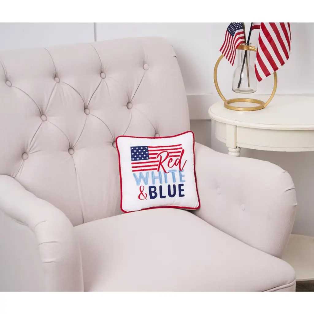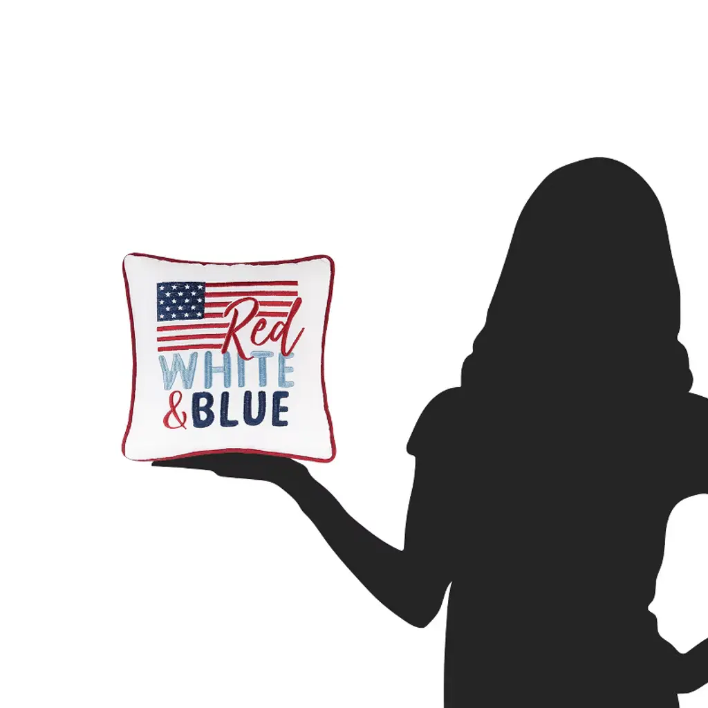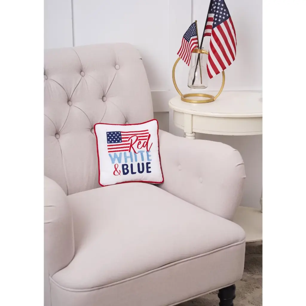 Celebrate patriotic pride with this 10" x 10" "Red White & Blue" USA flag small accent throw pillow. Perfect for Memorial Day, 4th of July, and Labor Day décor, it brightens any sofa, chair, or bed. Durable and cozy, it's ideal for year-round Americana-themed decorating or thoughtful gifting.