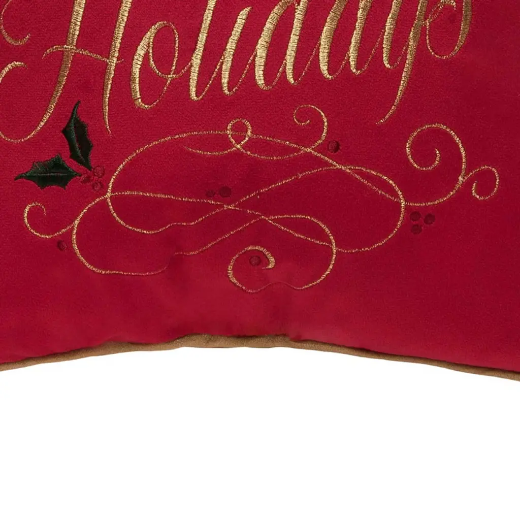 Spread holiday cheer with the Happy Holidays Swirl Pillow. The whimsical festive and elegant design and cheerful golden message ornamented with botanicals on this bold red backdrop pillow, makes it a perfect addition to seasonal decor. Stay with, and accompany us during our continued home décor magical ventures every season once again years after years.