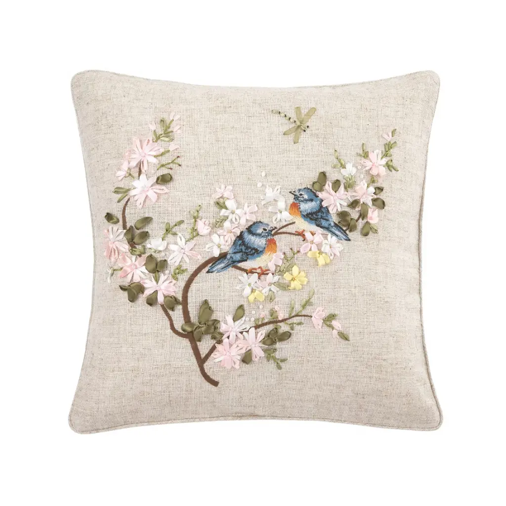 C&f Home Bluebird Spring Floral Ribbon Art Decorative Accent Throw Pillow, 16" X 16"