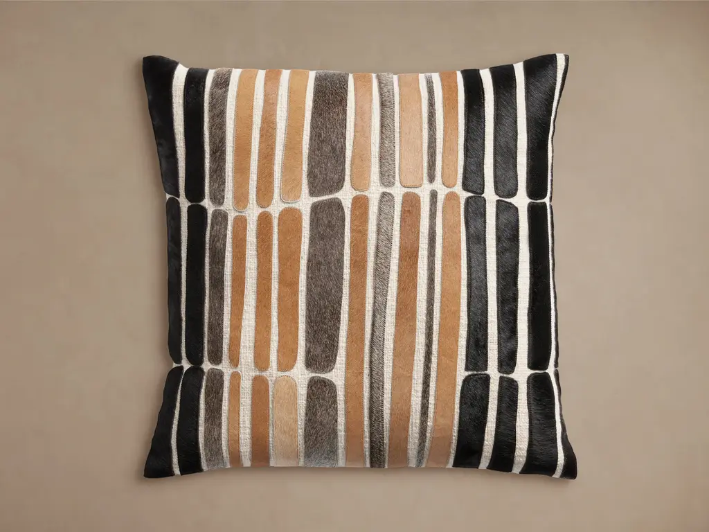 Transform your living space into a cozy, rustic oasis with our genuine cowhide leather decorative throw pillows. Expertly crafted with a stunning patchwork design, these pillows blend vintage charm with modern boho chic, creating a unique and eye-catching statement piece for any room. Meticulously handcrafted from authentic cowhides, each pillow is a one-of-a-kind work of art, showcasing the natural beauty and unique patterns of the leather. The patchwork design features a harmonious blend of colors, including rich reds, warm browns, crisp whites, deep blacks, and soft pinks, allowing you to effortlessly incorporate these accent pillows into your existing decor. Whether you're aiming for a rustic farmhouse vibe, a southwestern-inspired aesthetic, or a cozy bohemian retreat, these versatile throw pillows will elevate your space with their timeless appeal and exceptional craftsmanship. The soft, supple leather provides a luxurious texture that invites you to sink into their comfort, making them perfect for lounging or adding a touch of elegance to your seating arrangements. Designed with both style and functionality in mind, each pillow cover comes with a plush insert, ensuring long-lasting comfort and support. The durable construction ensures these pillows will withstand the test of time, retaining their vibrant colors and supple texture for years to come. Effortlessly transition your decor from season to season by incorporating these versatile pillows into your holiday or themed decorations. Imagine the warm and inviting ambiance they'll create during the fall and Christmas seasons, or the romantic touch they'll add for Valentine's Day celebrations. Whether adorning your couch, bed, chair, or outdoor seating area, these genuine cowhide leather throw pillows will become a cherished centerpiece in your home decor collection.