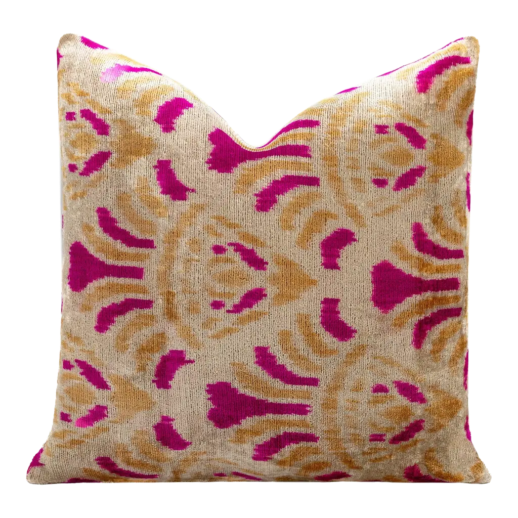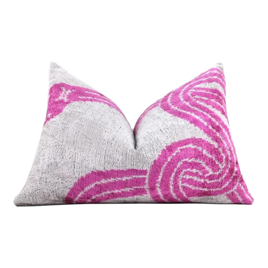 "Canvello Handmade Luxury Pink Throw Pillows ● 100% silk velvet material making the pink throw pillows super soft and cozy with a delicate touch and giving your room a more elegant look. ● Handmade pillows MADE IN TURKEY: these throw pillows are handmade, made in TURKEY. A matching colored zipper closure is almost invisible giving the pillow a neat and more pleasant look. ● PREMIUM DUCK FEATHER INSERT INCLUDED (The duck feather filling feels fluffy and gives your body excellent support.) ● IKAT Design gives these throw pillows a more artistic, a sort of traditional look. Matching with throw pillows of different colors suitable to the color tone these velvet throw pillows will make your living room more lively and bright. ● A high-quality 100% silk velvet fabric used to make this throw pillow not only gives it a rich look but also makes it durable and increases its life. ● Suitable for your couch, patio, chair, bed, or sofa in the bedroom, living room, office, or even in your car. This super soft and cozy throw pillow is a cool gift for your granny, parents, your siblings, or your friends. We provide you the best products because our first goal is customer satisfaction."