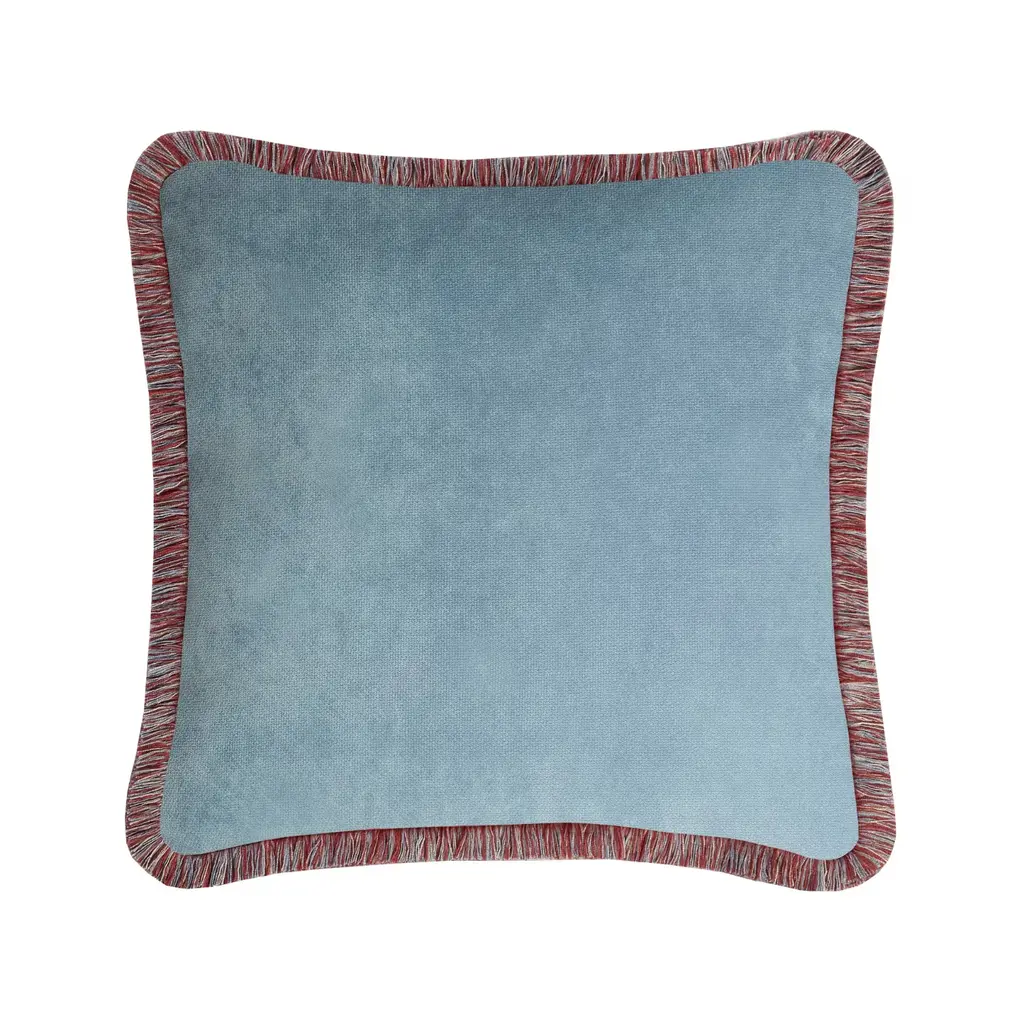 Capri Linen Pillow Light Blue With Multicolor Fringes