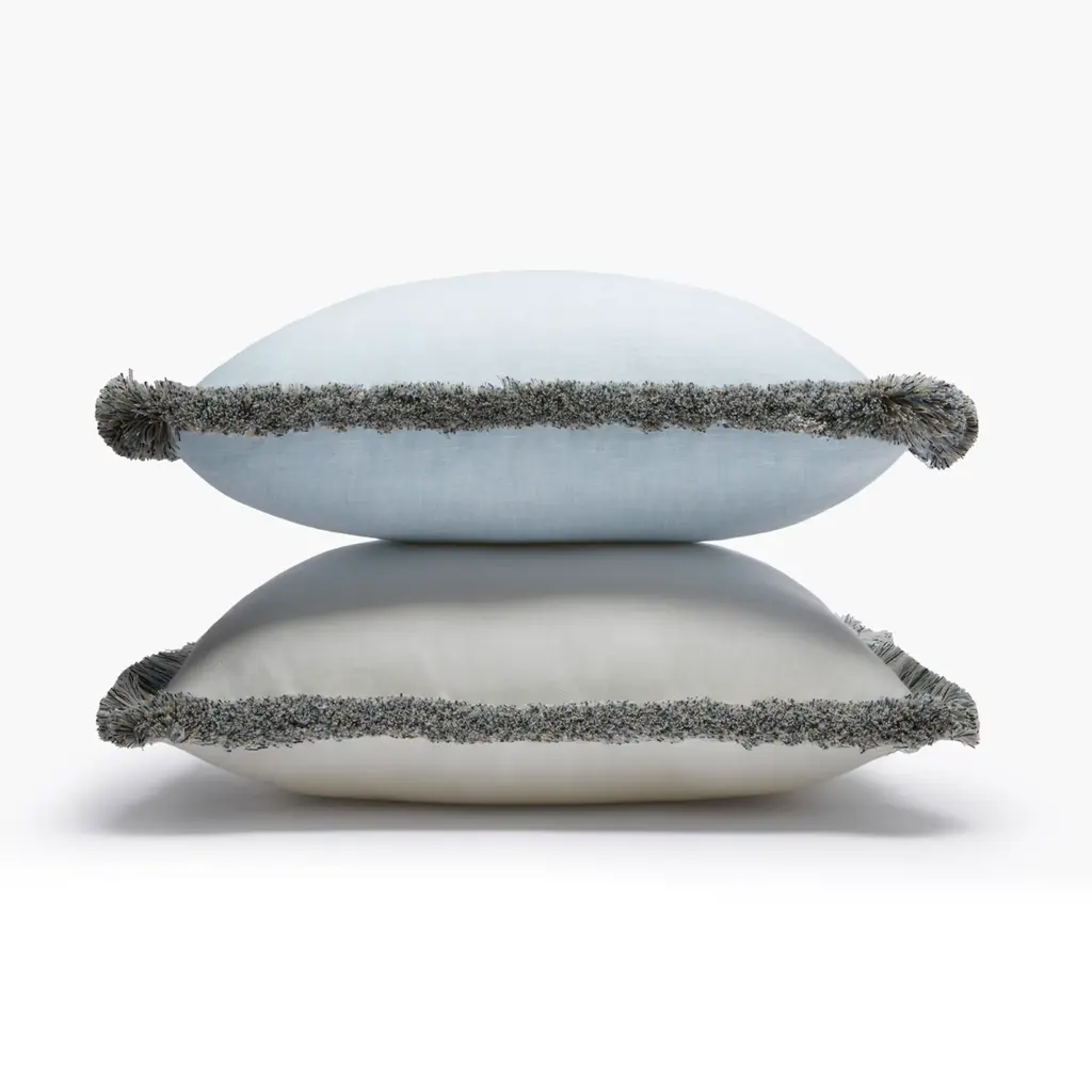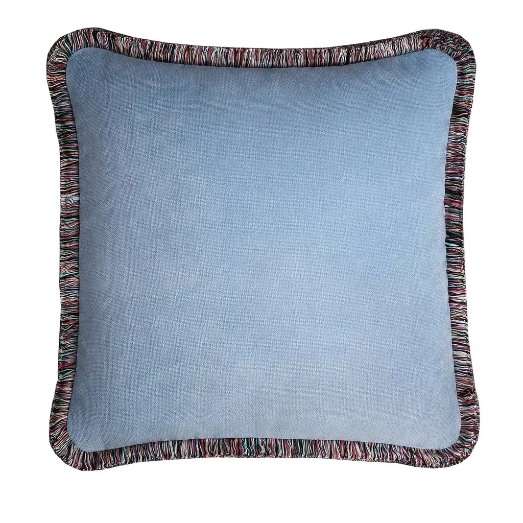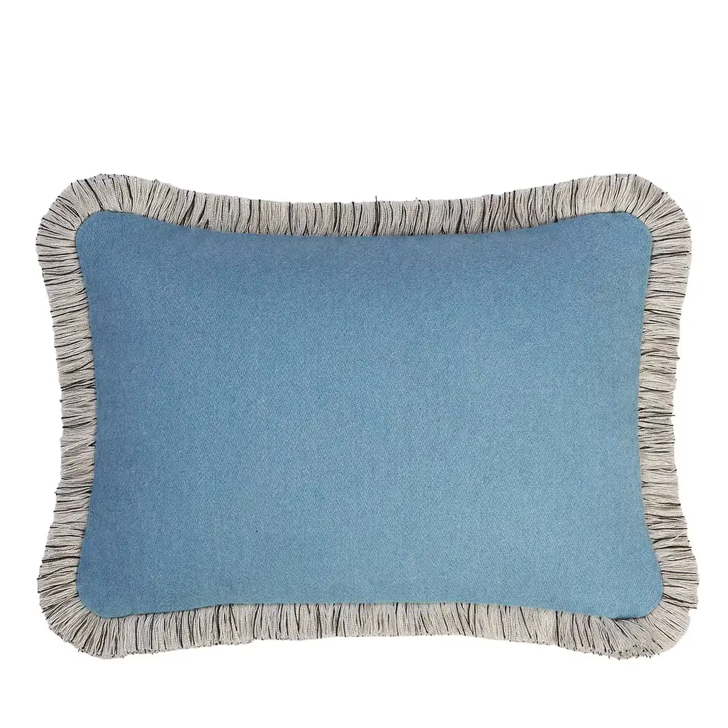 Capri Linen Pillow Light Blue With Multicolor Fringes Size Rectangular