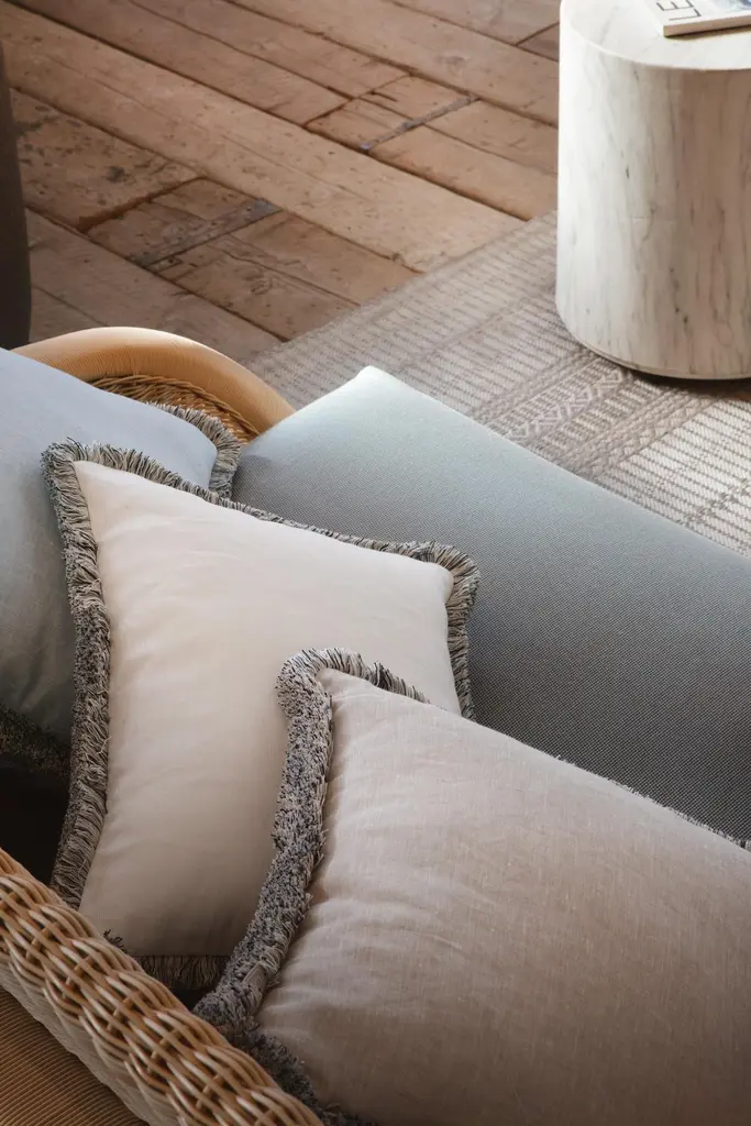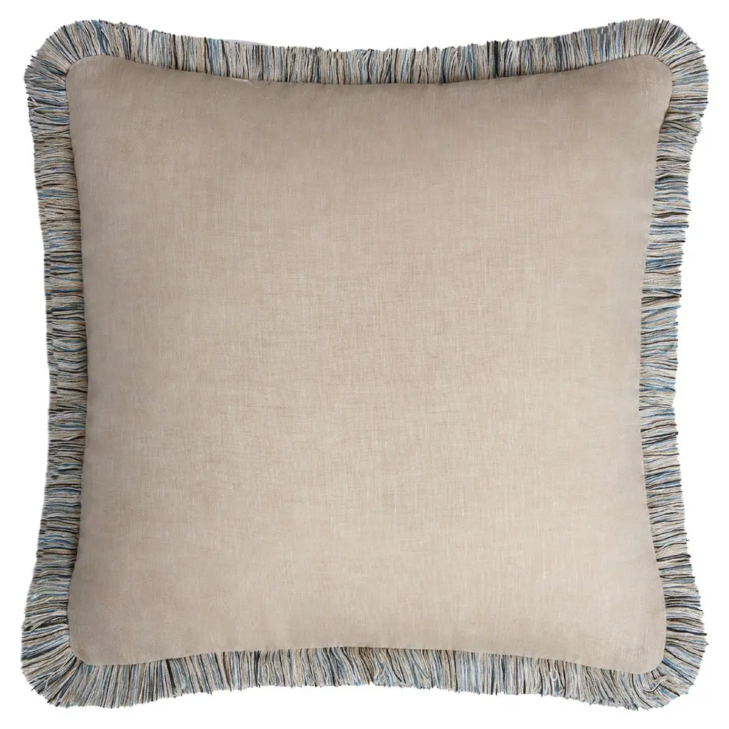 LO DECOR Capri Linen Collection with the colourful (blue, light blue, white, cream) fringes and the traditional LO DECOR mood, remind the glamour and fashion of the exquisite timeless elegance of the Italian Capri. The traditions and the craftsmanship of Italy are brought together in LO DECOR Linen collection cushions. Entirely handmade by local artisans this precious linen cushion carries the charm of Capri combining softness with elegance and design.Removable cover.Care instructions: Dry washLO DECOR Happy Linen Pillow the perfect accent piece for an easy style update, this cushion makes a chic accent for any well-decorated home, adding charm to a bed, sofa, or your favorite armchair. Crafted of pure Italian linen, refined with sophisticated cotton fringes, LO DECOR Linen collection is available in both plain and striped colorsboth with its delicate hues and details with understated glamour.Warm colors, exquisite craftsmanship, and elegant materials are the hallmarks of these cushions which will be a refined addition to both a classic and contemporary decor.LO DECOR is a luxury interior design firm established by Lorenza Briola in 2017, noted for its highly sophisticated aesthetic and meticulous production process, representing the Italian Excellence in the realization of Italian luxury handmade cushions.Core to the brand is a research and innovation ethos, that is evident in all its cushions, from thread and color selection to the final motif design. Based in Carimate (Como), Lo Decor places their customers at the center of its creations, providing customizations that embody each vision and interior need. Committed to creating only the finest cushioned comforts from exquisite fabrics, LO DECOR celebrates tradition, innovation and outstanding quality. Each individually artisan fashioned in Italy, the pillows demonstrate a devoted attention to detail and are constantly evolving with the decadent demands of home interiors and outdoors.The skills of talented artisans are employed to create cushions that enhance the value of impeccable details. All pieces are marked by simple versatility and charming hues, that are easy to mix and match. Each artisan crafted using a smooth fabric and plush padding, the pillow will instantly elevate both your mood and interior, offering a rich prestige and gentle sheen.