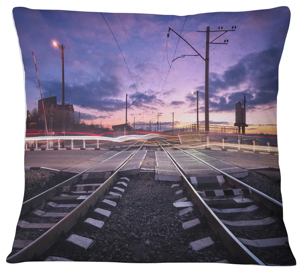 Cargo Train Platform With Container Landscape Photography Throw Pillow, 16"x16"