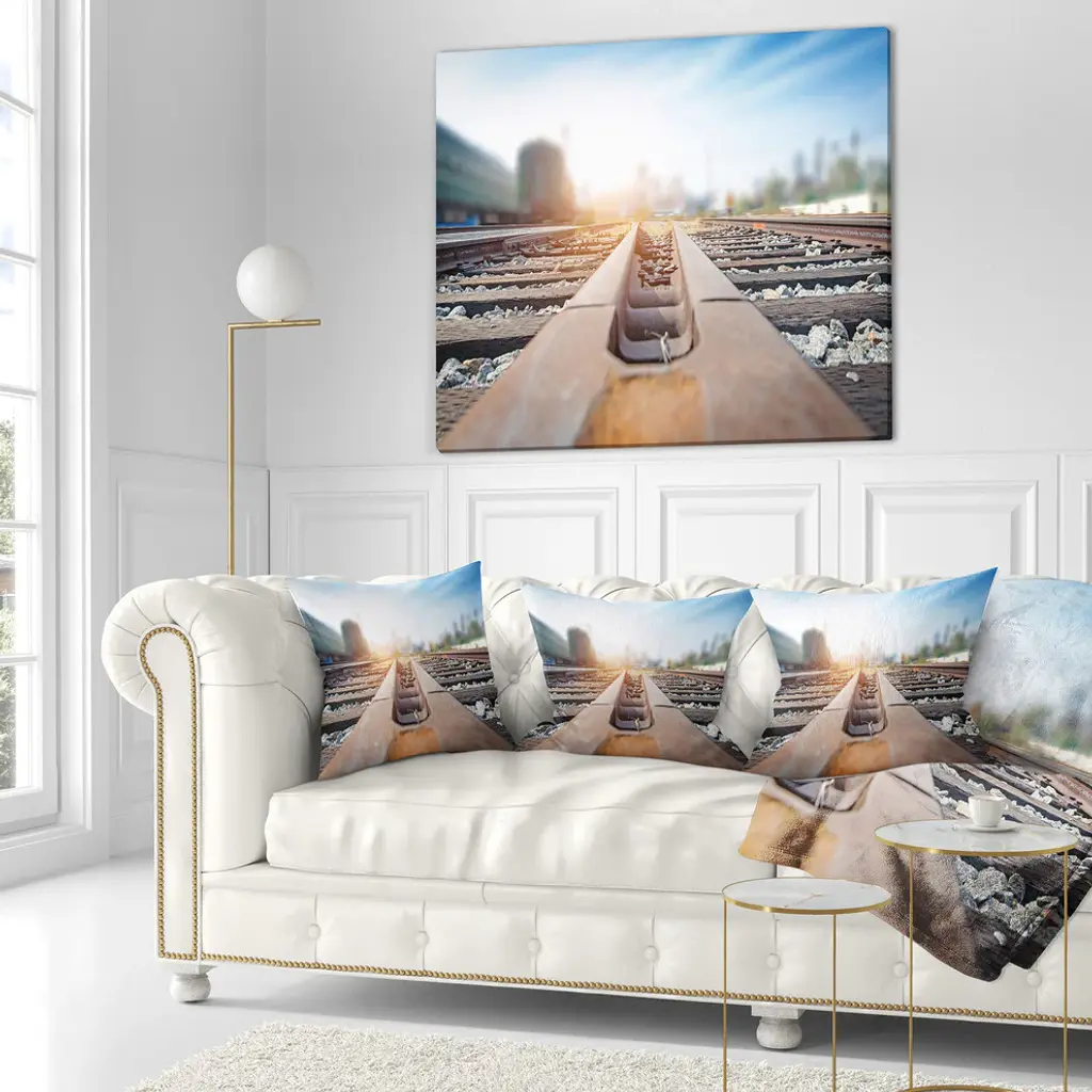Cargo Train Platform With Container Landscape Photography Throw Pillow, 18"x18"