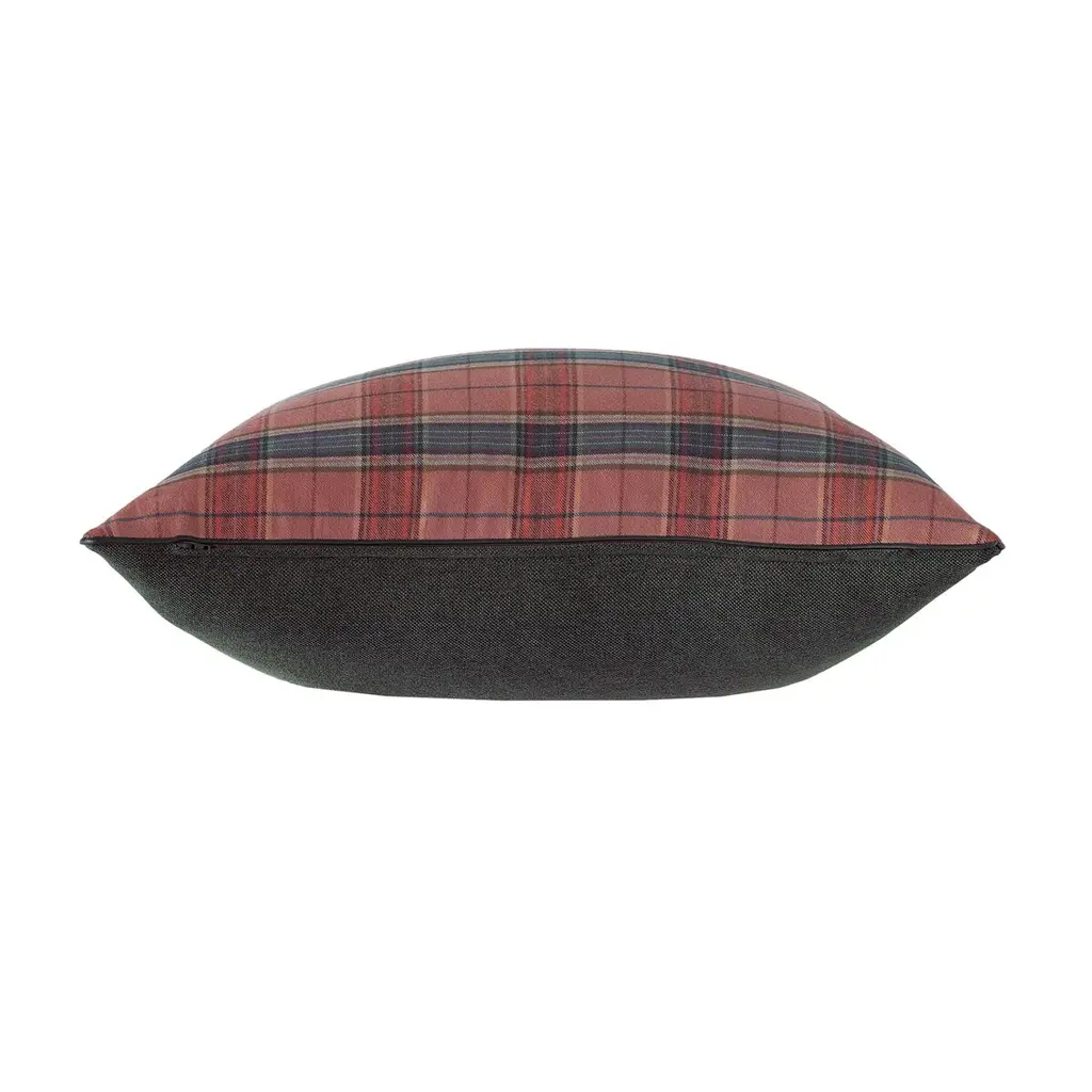 Introducing the Carrie Plaid Pillow, a charming addition to any living space. This decorative pillow features a classic plaid design crafted from 100% cotton, offering both style and comfort. The pillow reverses to a complementary Modesta Charcoal, providing versatile styling options. A small, faux leather cord trim adds a touch of sophistication along the edge. The pillow comes with an insert and a convenient zipper closure for easy care. Please note, this pillow is dry clean only.