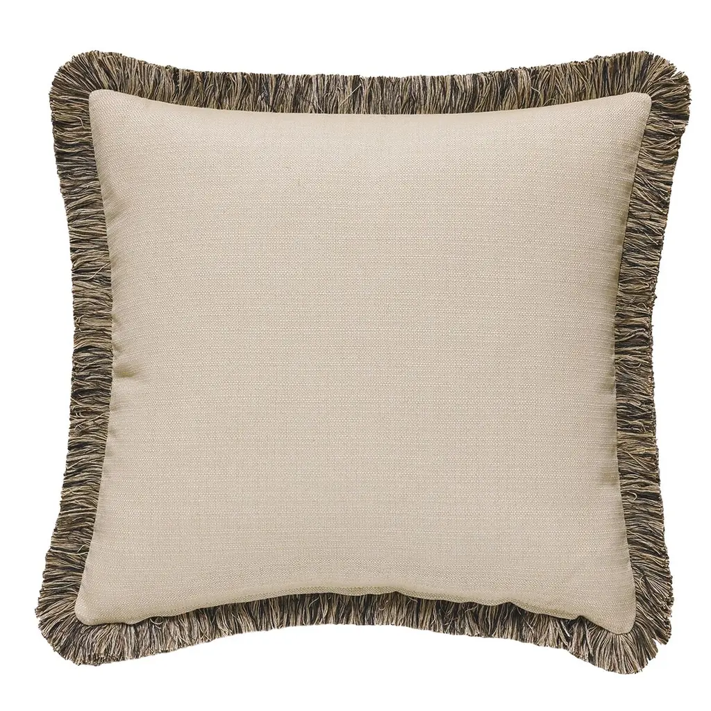 Carrie Studded Fringe Pillow, Brown/beige
