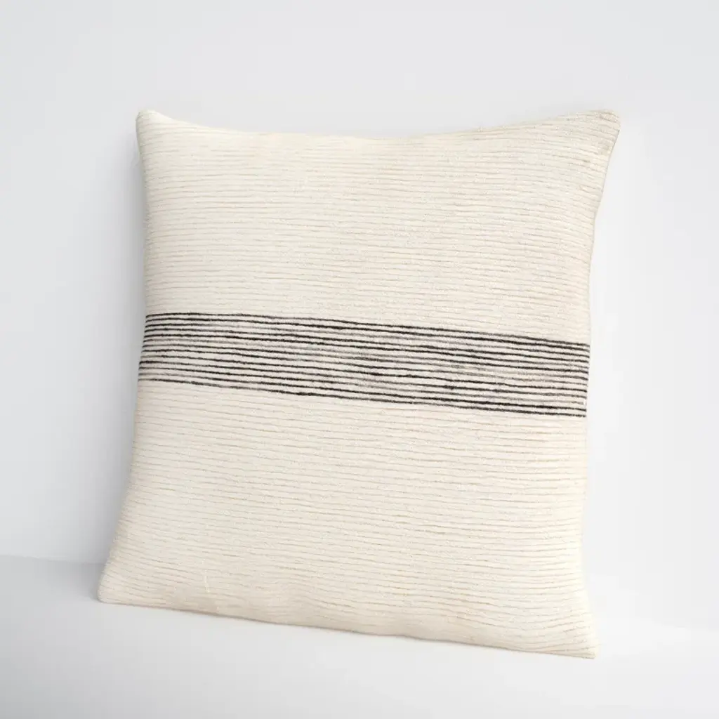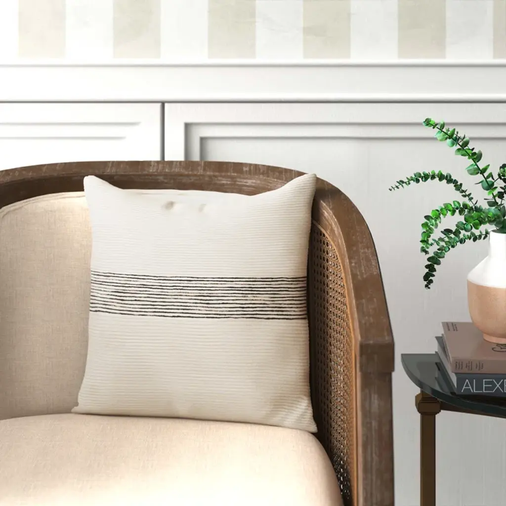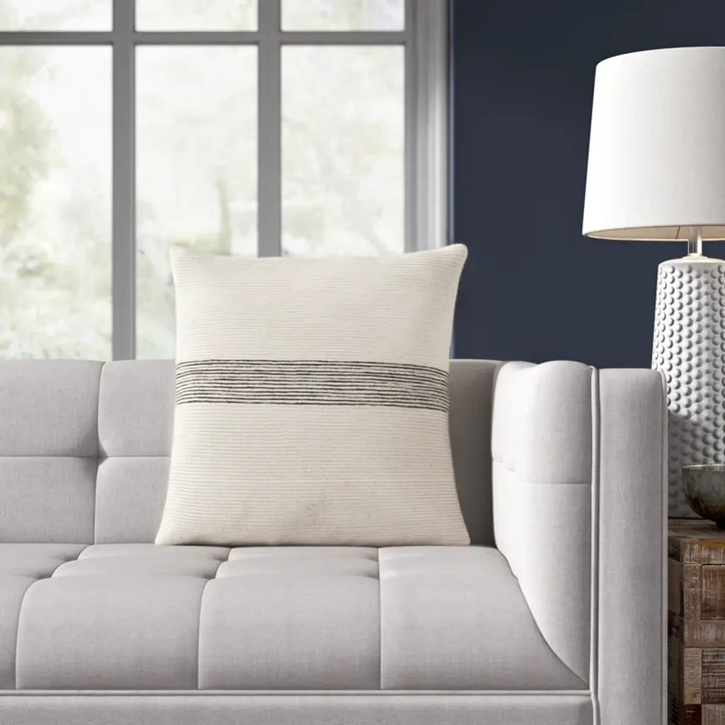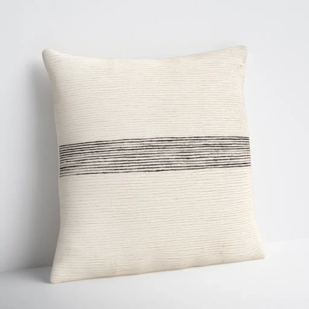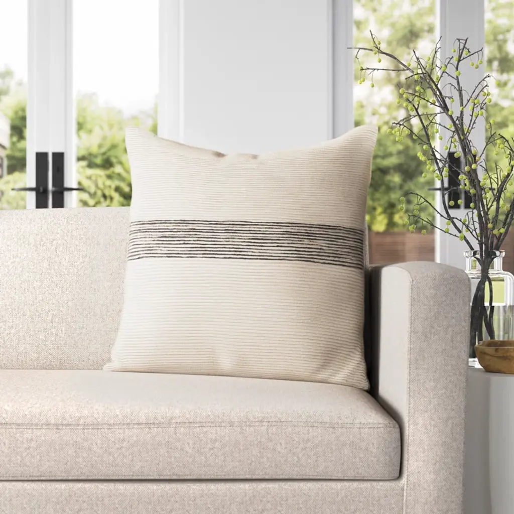 This throw pillow combines a neutral color palette with an understated pattern to create a design that fits almost anywhere. It has a horizontal stripe pattern with a bold band of black and charcoal stripes on an ivory background. Thanks to the zipper closure, it's easy to remove the cover when it needs to be spot-cleaned. And with different size options, this square pillow cover offers even more versatility.