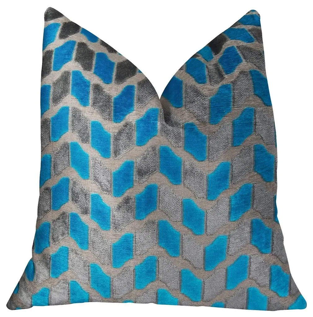 Castle Crest Turquoise And Gray Handmade Luxury Pillow, 12"x20"
