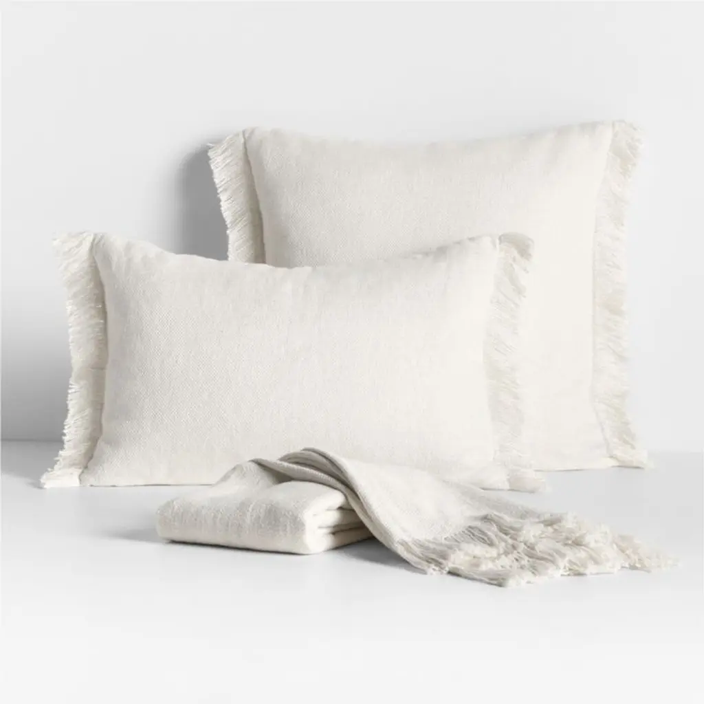 An irresistibly soft and slubby weave gives this throw pillow a relaxed look and feel that you'll want to snuggle up with every day. The inclusion of silky viscose adds a sophisticated sheen to the organic beauty of sustainably sourced linen fibers. Yarn-dyed in elegant ivory, the fringed pillow looks chic and casual tossed on a sofa, armchair or bed-especially paired with the matching throw blanket. Our exclusive pillow includes your choice of a plush feather-down or lofty down-alternative insert.