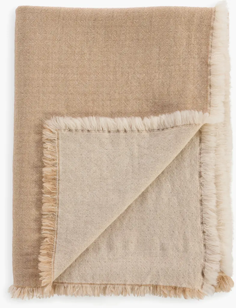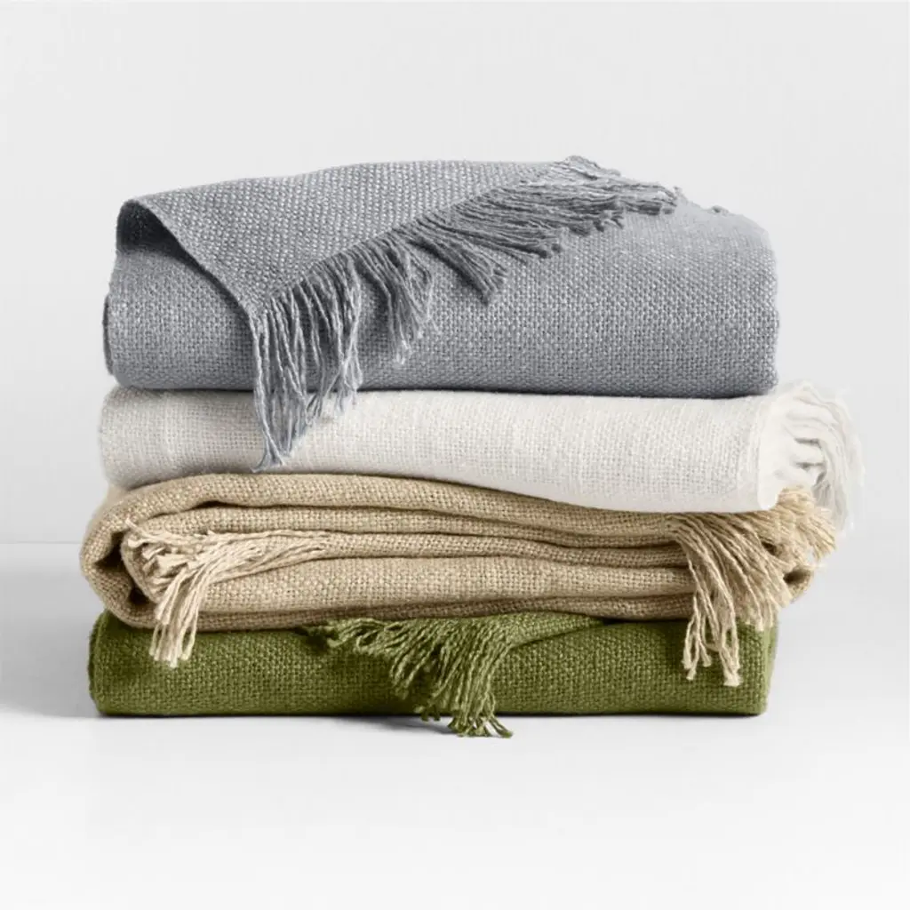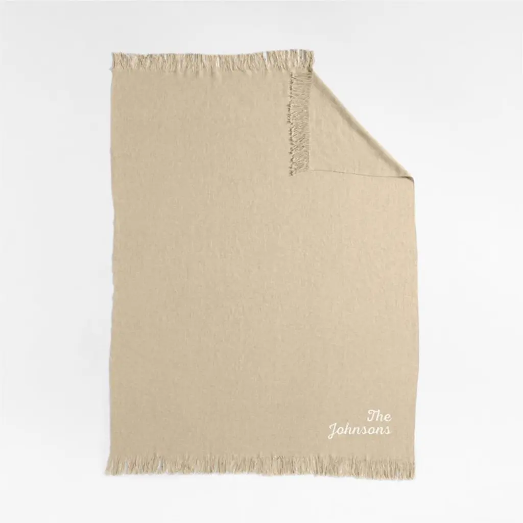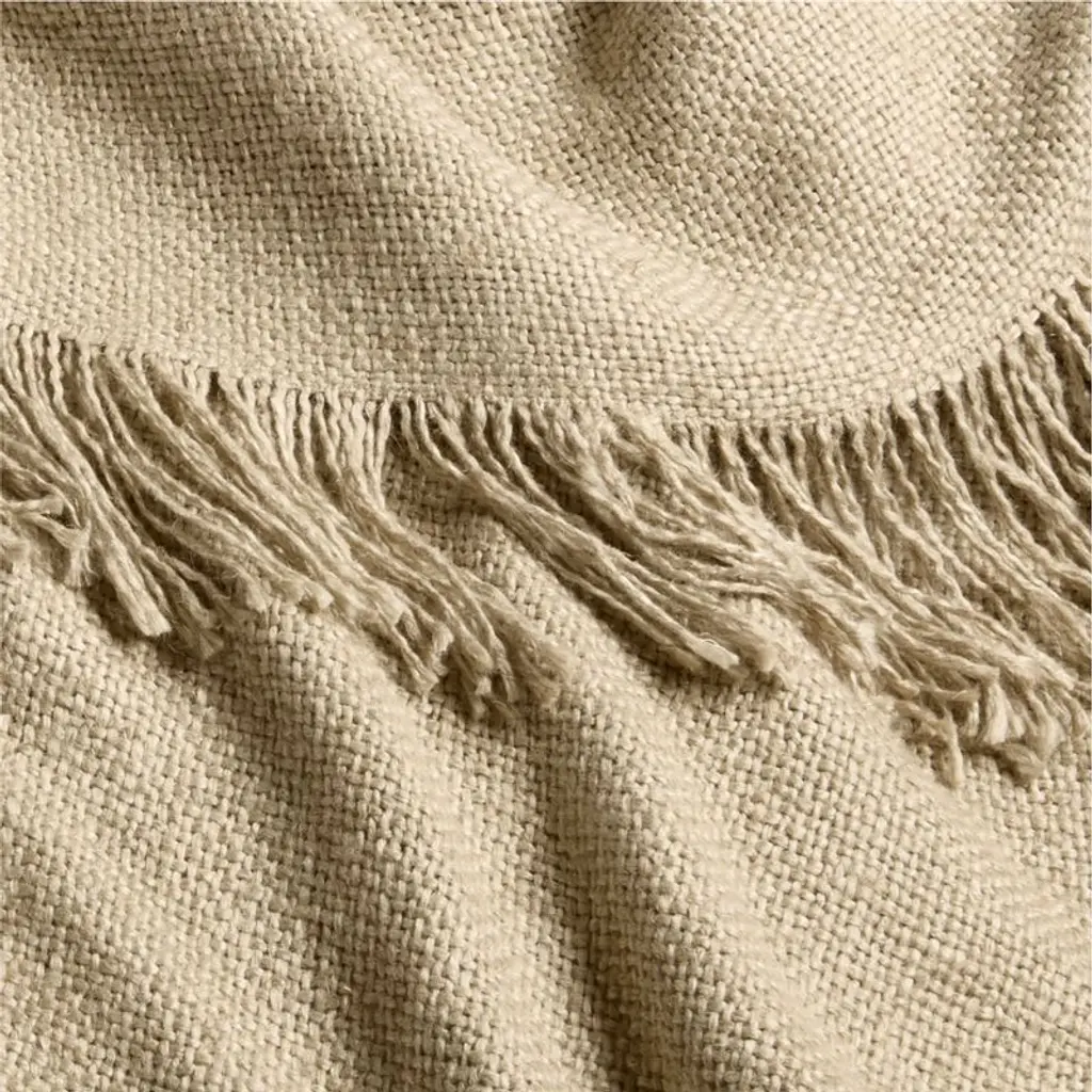 An irresistibly soft and slubby weave gives this throw blanket a relaxed look and feel that you'll want to snuggle up with every day. The inclusion of silky viscose adds a sophisticated sheen to the organic beauty of sustainably sourced linen fibers. Yarn-dyed a warm taupe hue inspired by flax, the fringed throw blanket looks classic and casual draped over a sofa or bedespecially when paired with the matching throw pillow.