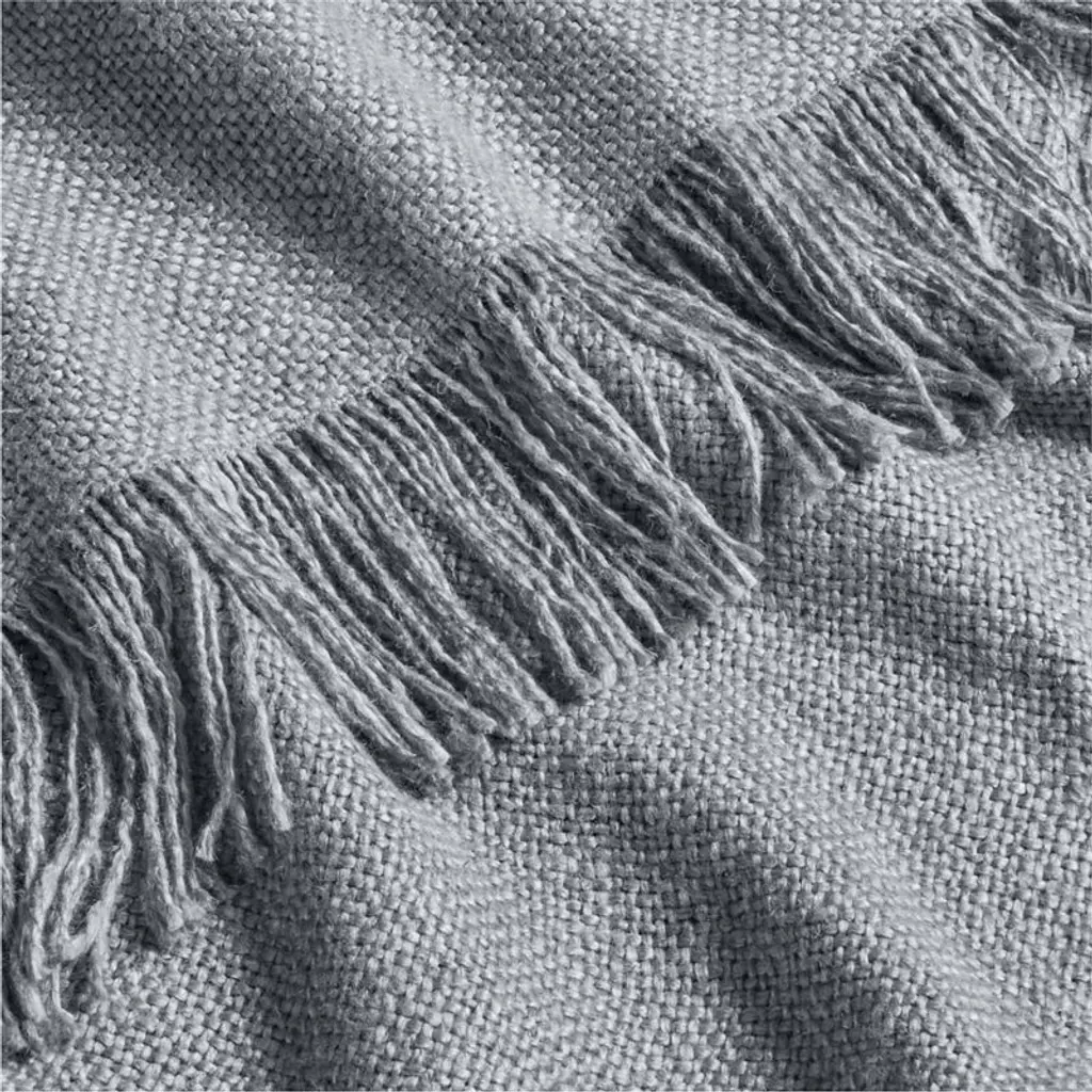 An irresistibly soft and slubby weave gives this throw blanket a relaxed look and feel that you'll want to snuggle up with every day. The inclusion of silky viscose adds a sophisticated sheen to the organic beauty of sustainably sourced linen fibers. Yarn-dyed smoky blue, the fringed throw blanket looks classic and casual draped over a sofa or bedespecially when paired with the matching throw pillow.