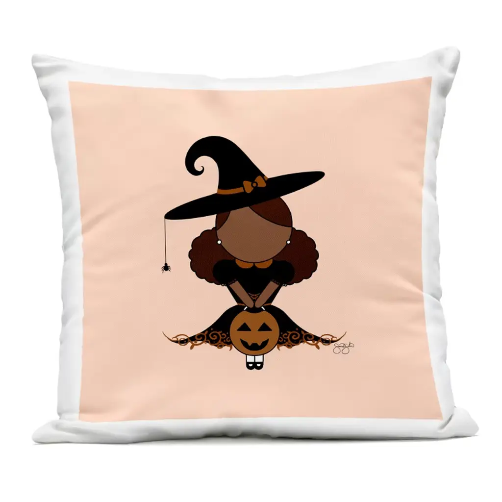 Cat Behind The Hat Cream Halloween Print Decorative Throw Pillow, 20"