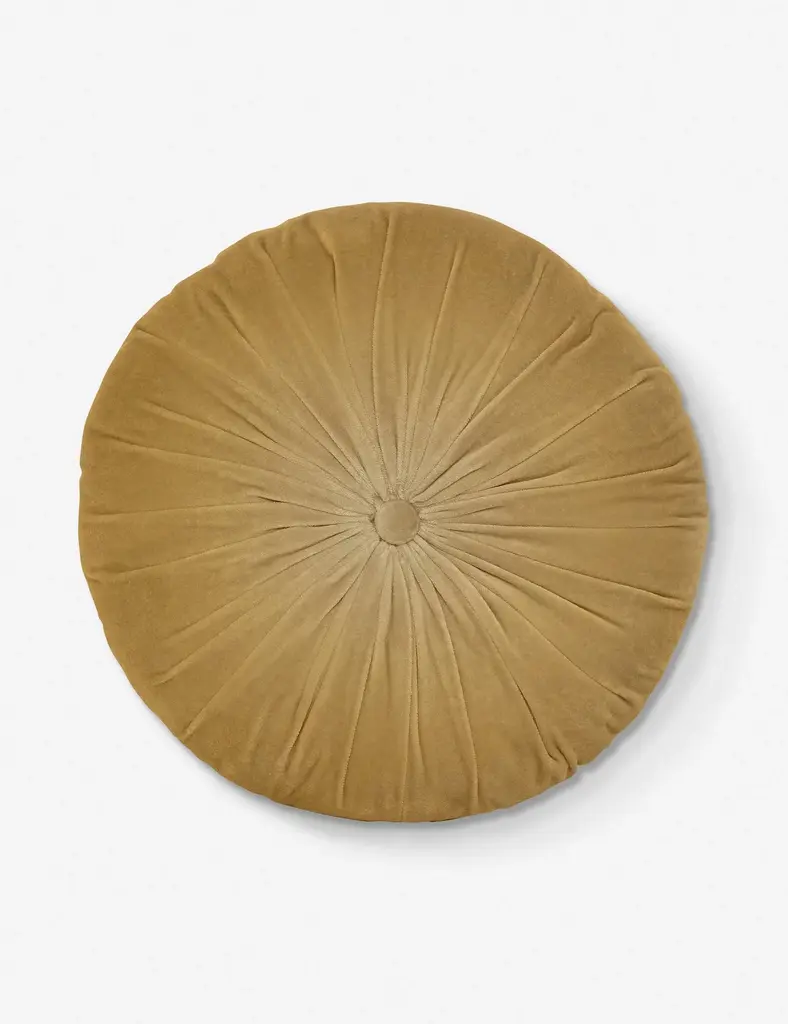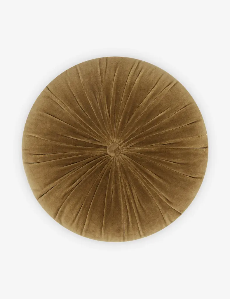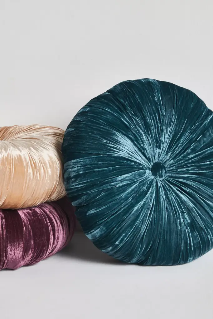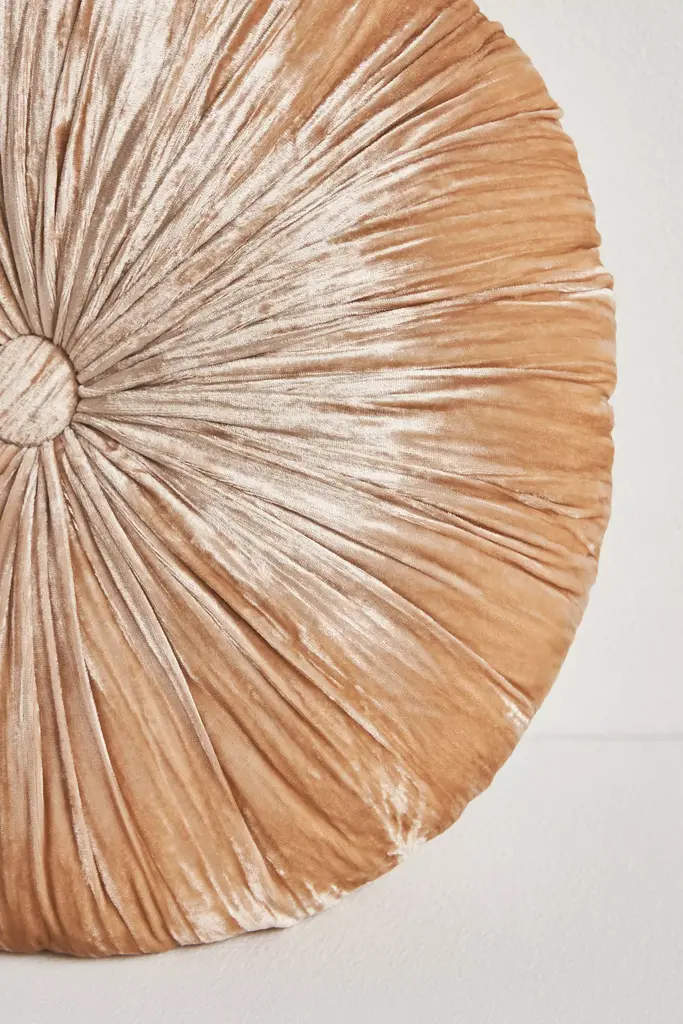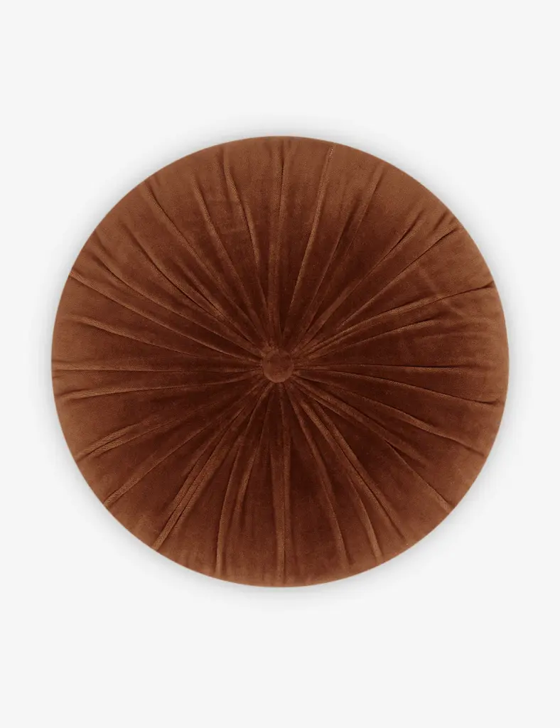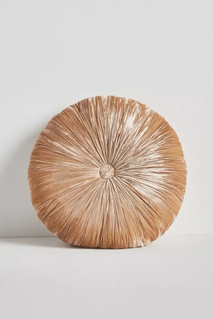 Pretty pleats make this velvety round pillow a statement-making addition to any seat.