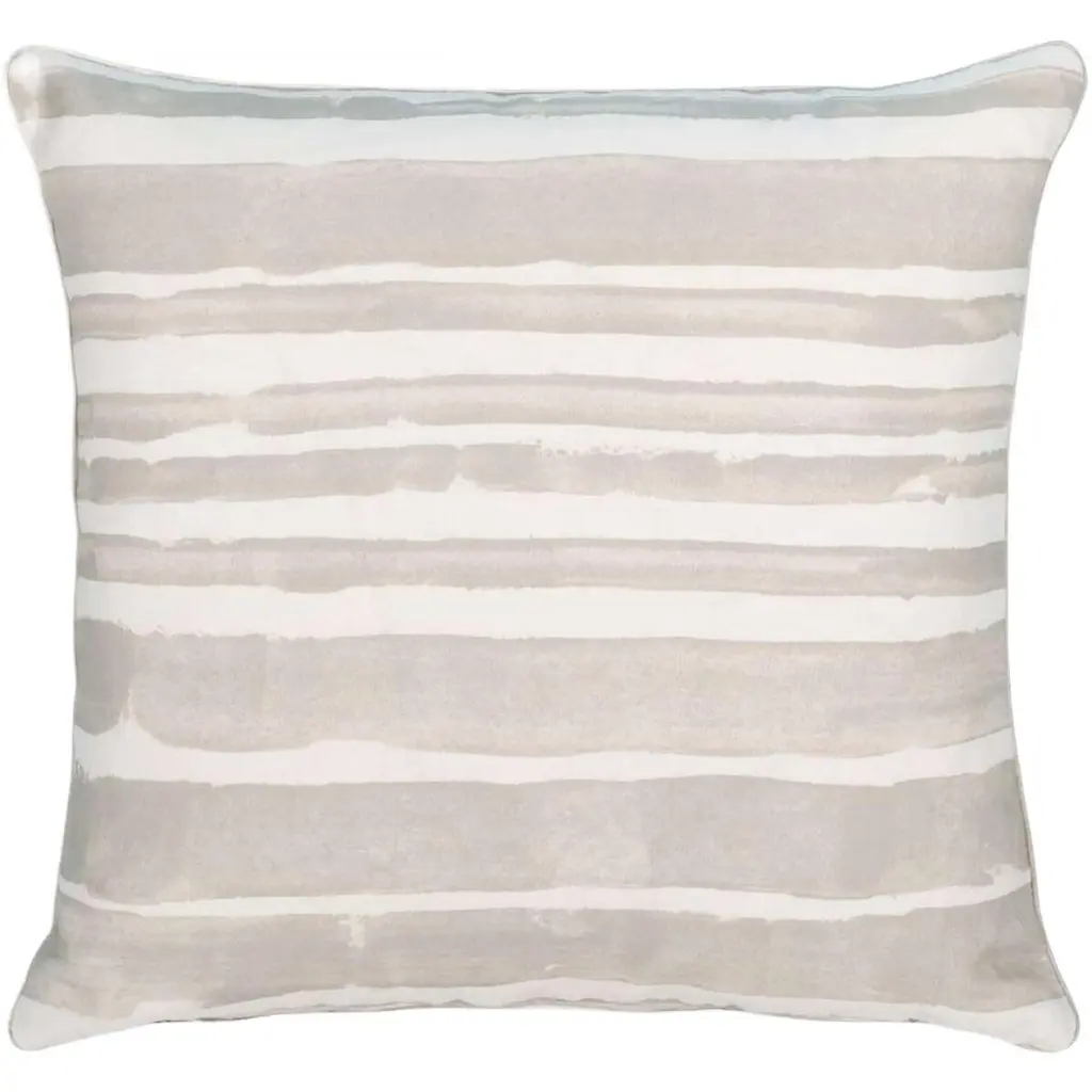 This pillow features Chandler Warp Print with a knife edge finish. Only a true warp print could achieve the ethereal effect that makes this soft horizontal stripe fabric so unique. Pillow includes a feather/down fill insert and hidden zipper closure.