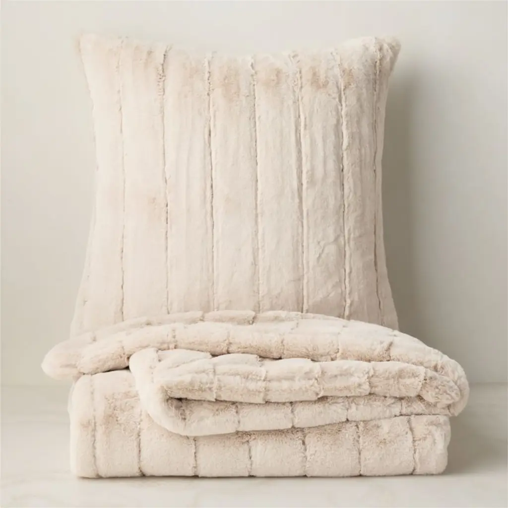 Premium faux fur throw blanket and matching throw pillow are irresistibly soft. Woven of sumptuous yarns with a sleek channel detail, the pillow and blanket recreate the warmth and silky feel of genuine fur. CB2 exclusive.