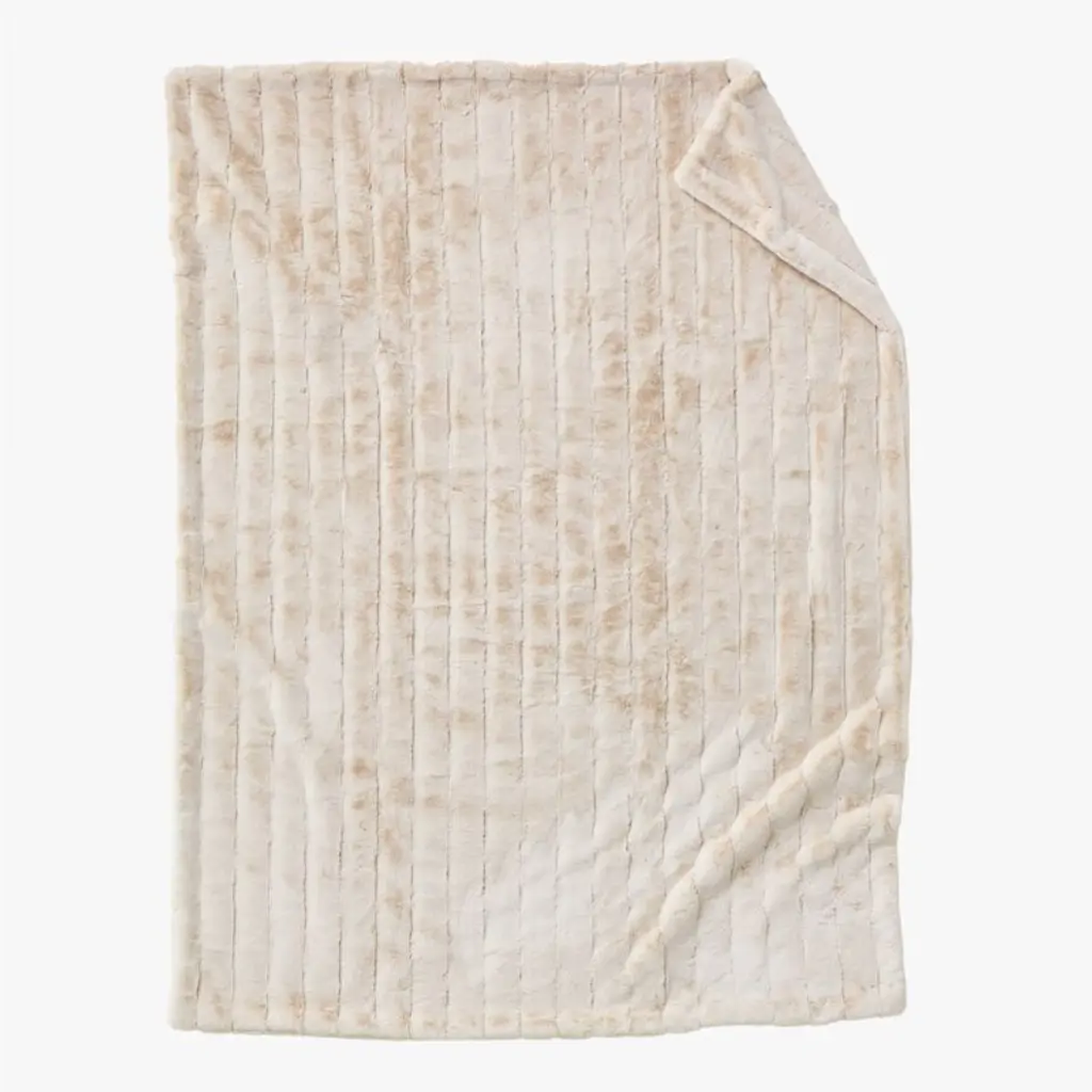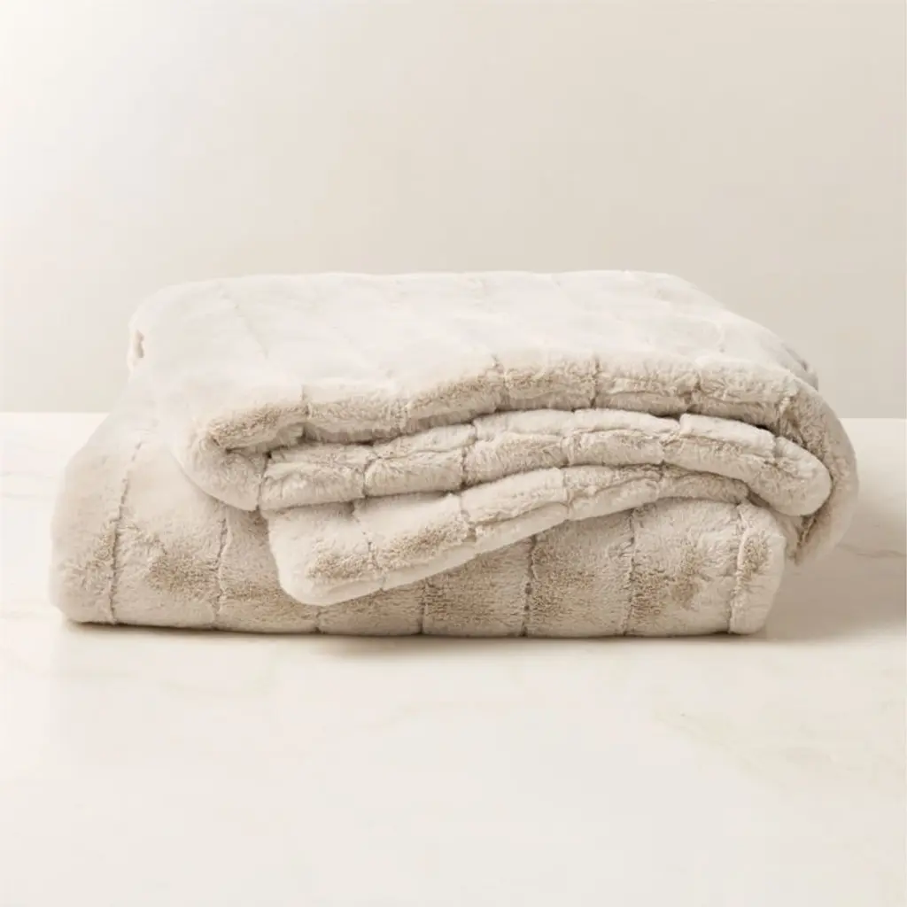 Premium faux fur throw blanket and matching throw pillow are irresistibly soft. Woven of sumptuous yarns with a sleek channel detail, the pillow and blanket recreate the warmth and silky feel of genuine fur. CB2 exclusive.