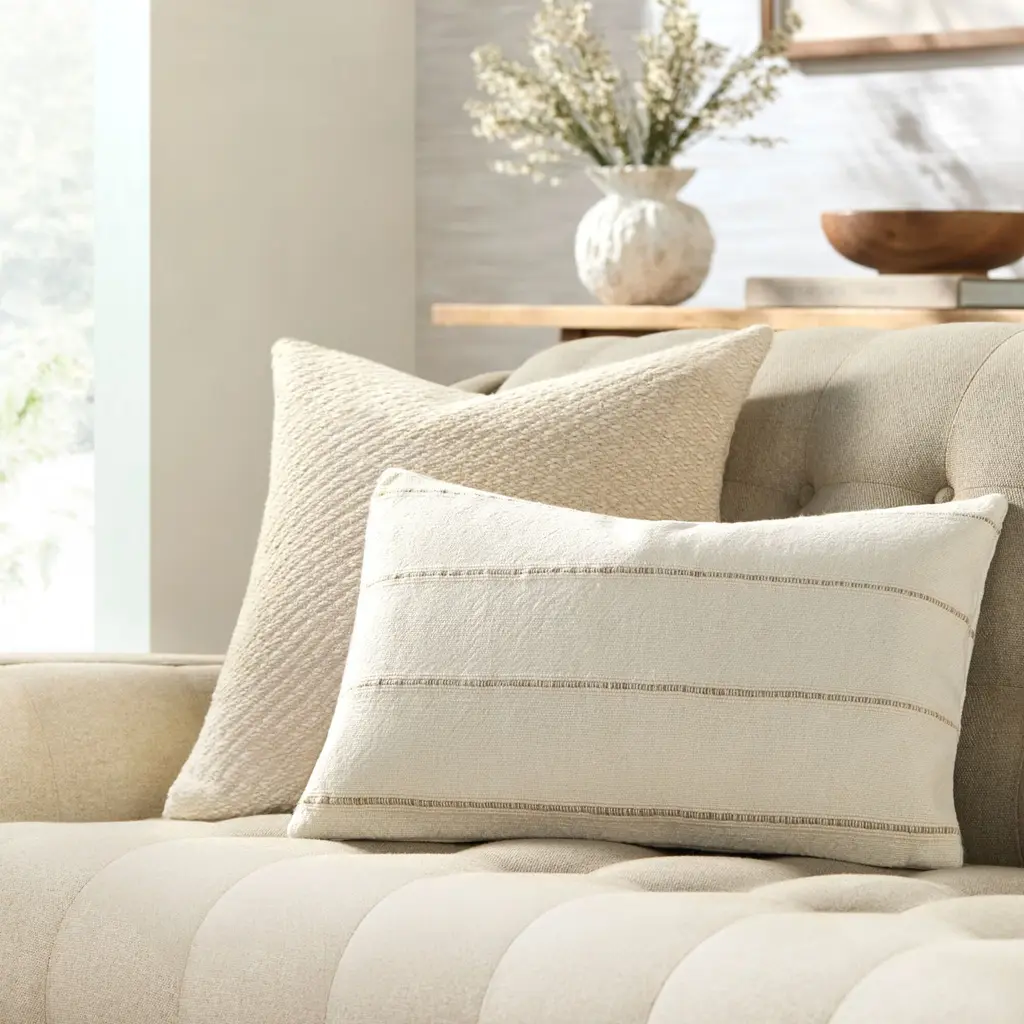 A stylish and luxurious accent for any sofa or bed, the Charleston Throw Pillow from Surya adds a touch of sophisticated, subtle texture. Made in India, this beautiful pillow is crafted from a soft and inviting blend of linen and cotton, giving it a natural, high-quality feel. The exquisite, woven pattern brings a sense of depth to the design, while a clean, knife-edge finish adds a tailored touch. A fusion of premium materials and refined design, it’s a timeless addition to your home decor. Highlights: