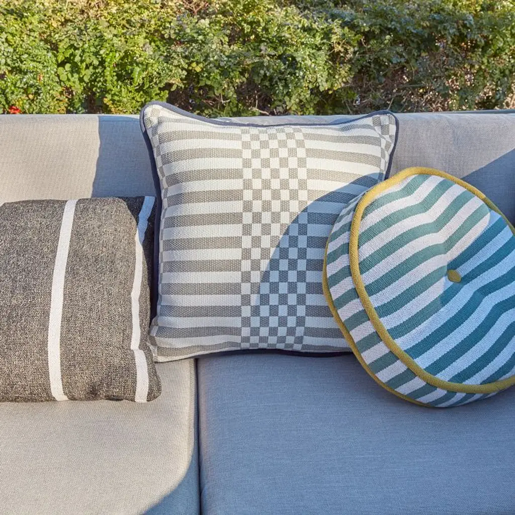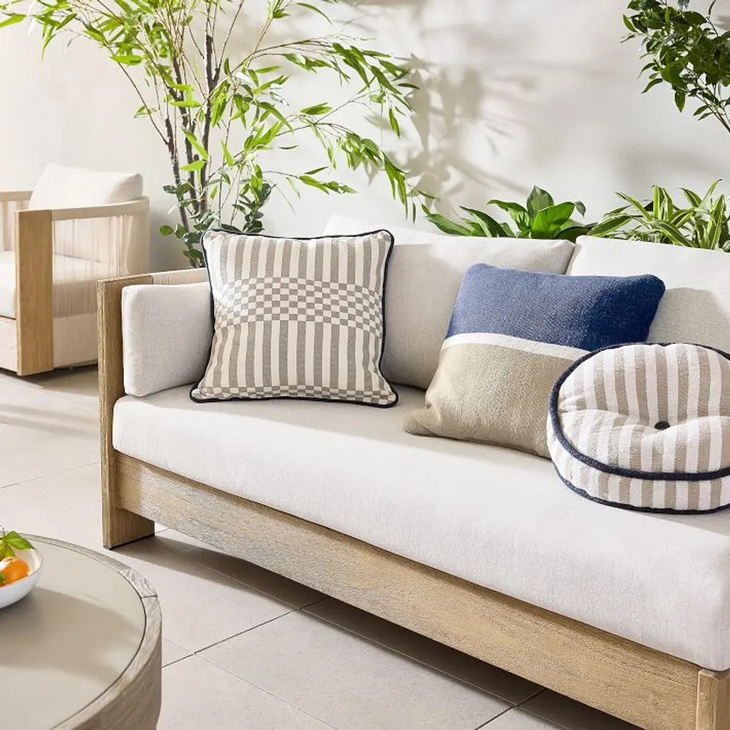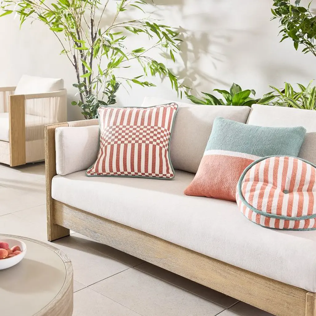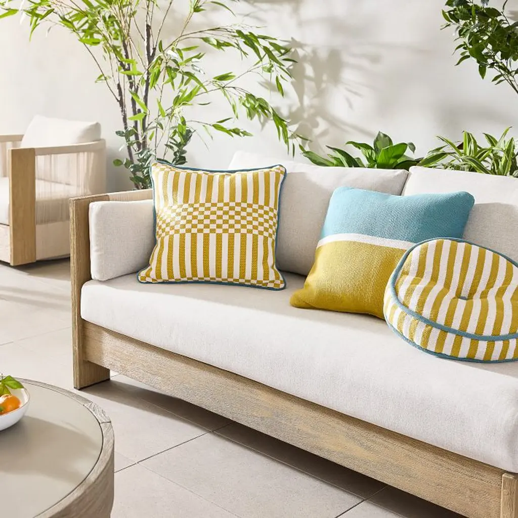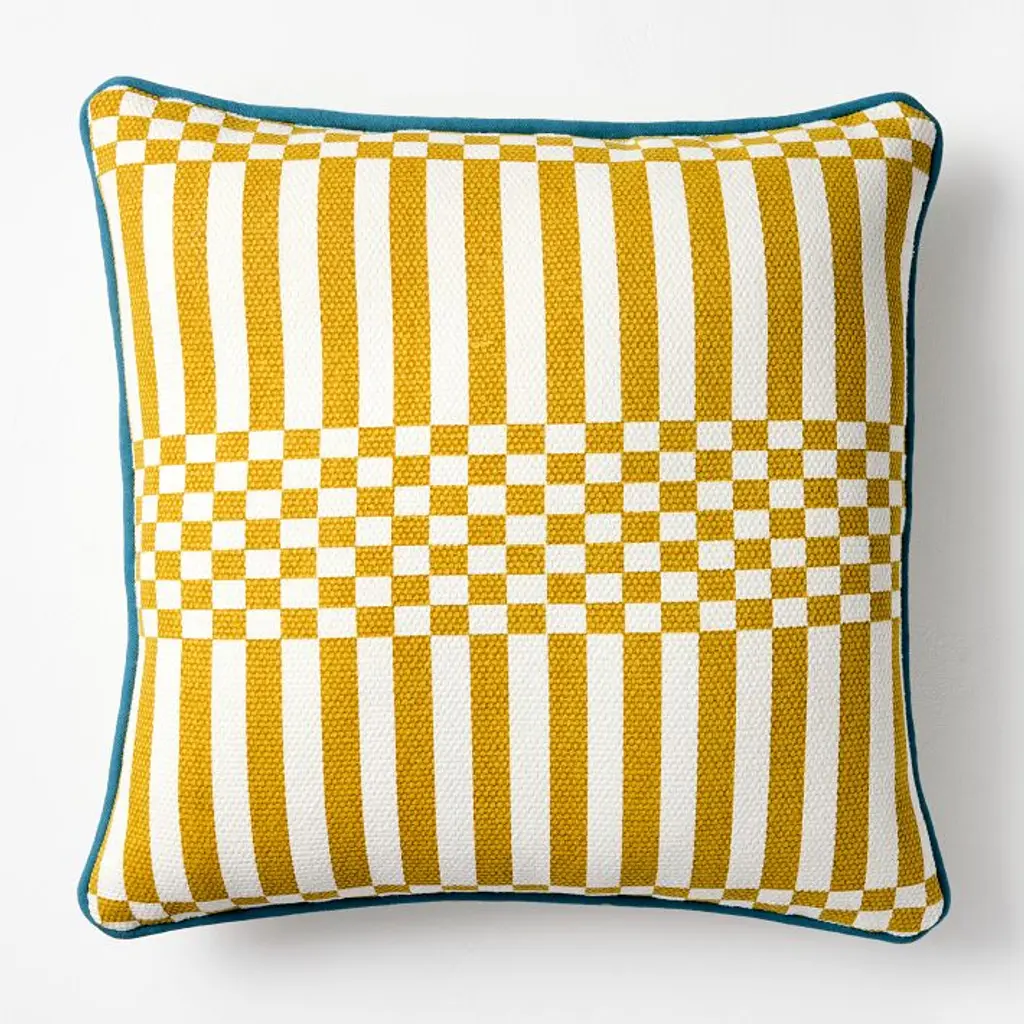 20"sq. Shell: 100% cotton. By choosing our cotton products, you’re supporting our investment in Better Cotton’s mission. This product is sourced via mass balance and therefore may not contain Better Cotton. Learn more. Fill: 100% polyester. Pattern on both sides. Indoor/outdoor. Water resistant. Pre-filled; cover isn't removable. Made in India.