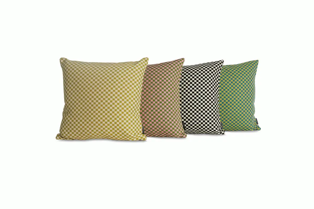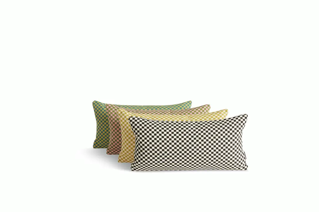 The Checker Pillow is made with a cotton-blend fabric originally designed by Alexander Girard in 1965. Trained as an architect, Girard was proficient in nearly all design disciplines, and had a profound impact on 20th-century visual culture. During his 21 years as the director of design for the Herman Miller textile division, Girard designed more than 300 textiles. This pillow is produced by renowned textile maker Maharam.
