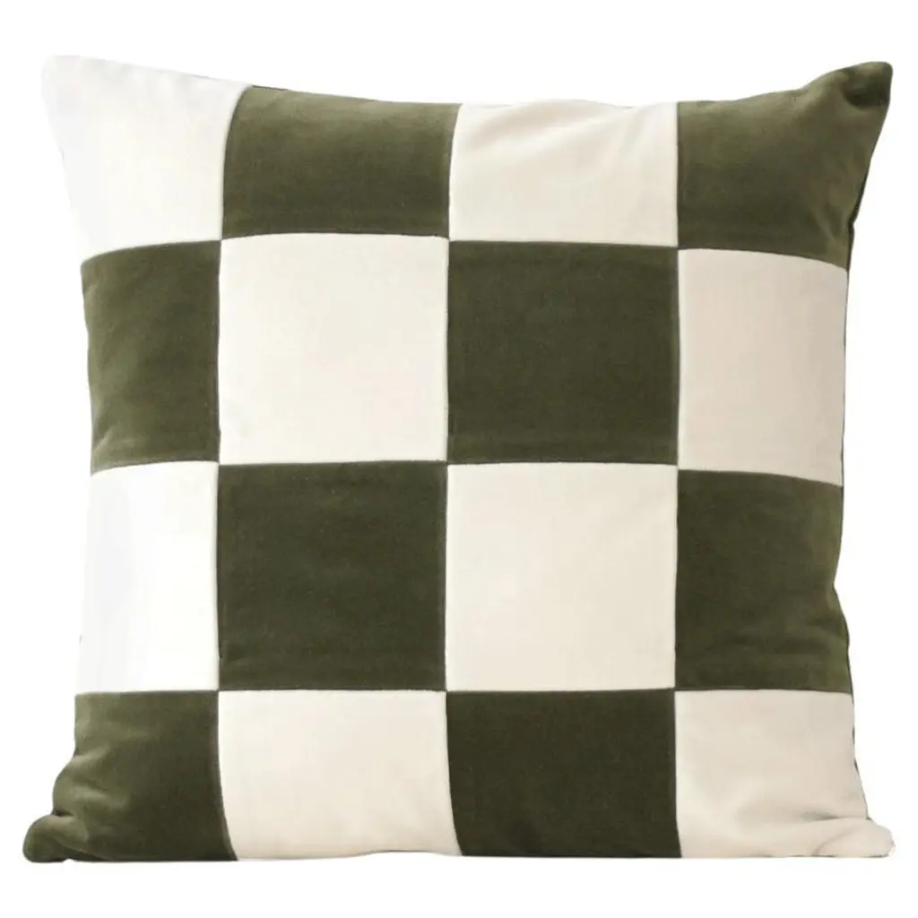 Checkerboard Hand-Painted-Olive Throw Pillow